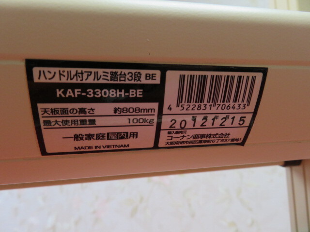 コーナン商事 ハンドル付 アルミ踏台 3段 KAF-3308H-BE クリーム色