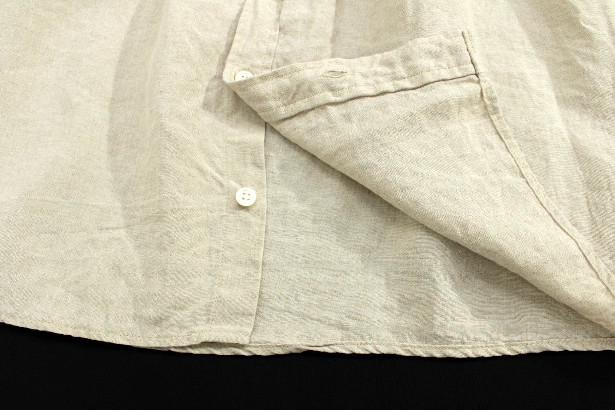 程よいハリのあるリネン100%の織り生地で、ほんのりシワ加工がほどこされたナチュラルな風合いです。