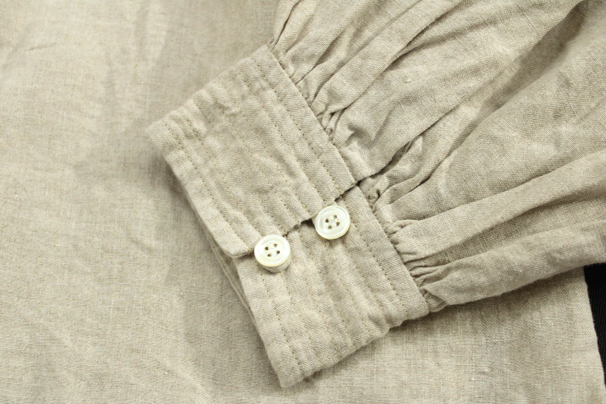 ☆美品☆ユニヴァーサルティシュ/リネン100%長袖シャツブラウス定価1.7万:ベージュyw869
