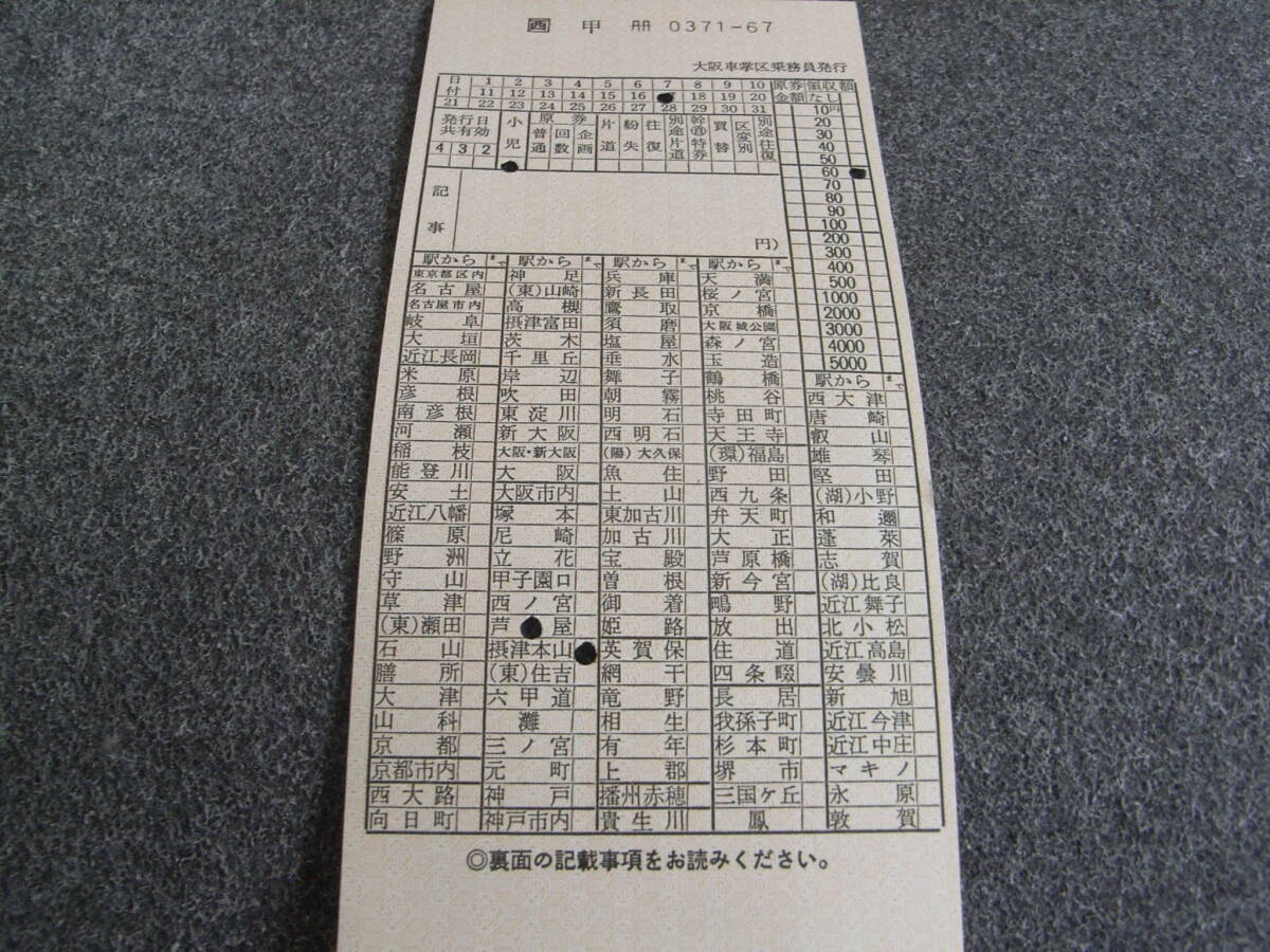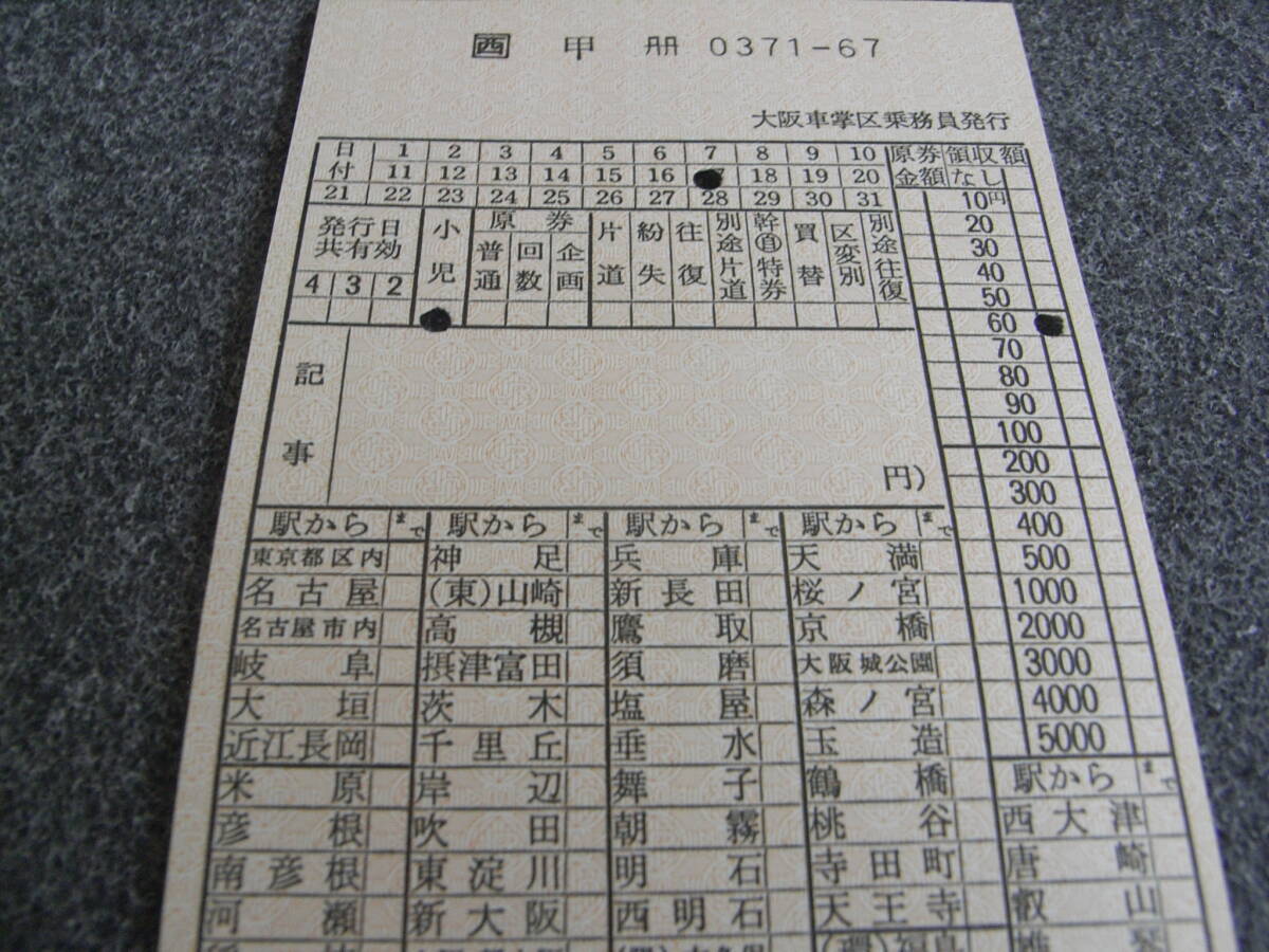 車内補充券 大阪車掌区乗務員発行 0371-67 JR西日本