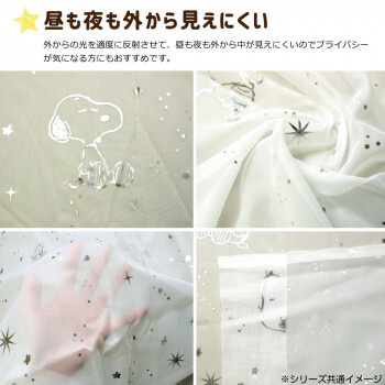 | スヌーピーのレースカーテンが登場!丸洗い可能なので万が一汚れてもお手入れ楽ちんです♪子供部屋にはもちろん大人の方にもぴったりなシンプルなデザインです! ※ご使用のモニターによっては、商品画像等の画面表示上の色合いと、実際の商品の色が異なる場合があります。ご了承ください。 |