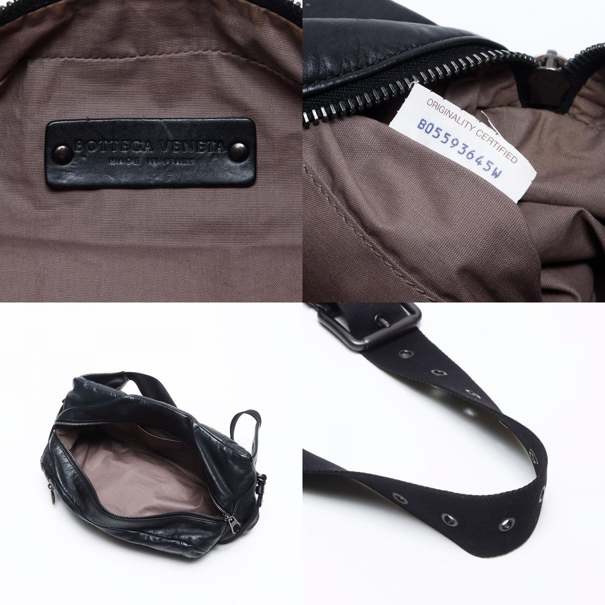 美品 BOTTEGAVENETA イントレチャート ウエストバッグ ブラック