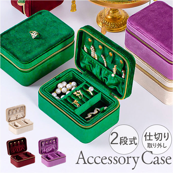 | 商品名 | ベロアアクセサリーケース ジュエリーボックス 二段式 持ち運び |
