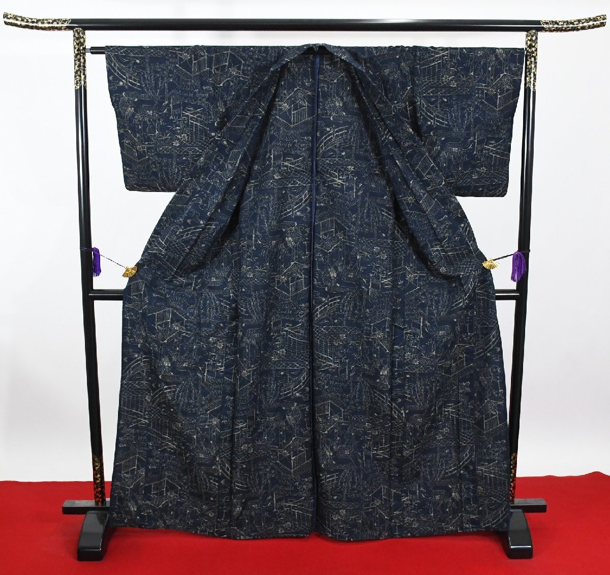 | サイズ | ▼身丈 (背中から) 159cm ▼裄丈 66cm ▼袖丈 49cm ▼後巾 31cm ▼前巾 25.5cm |