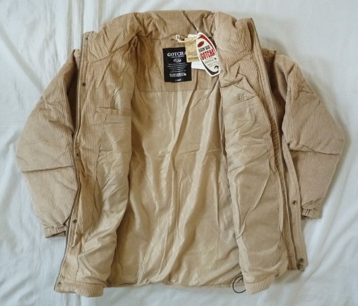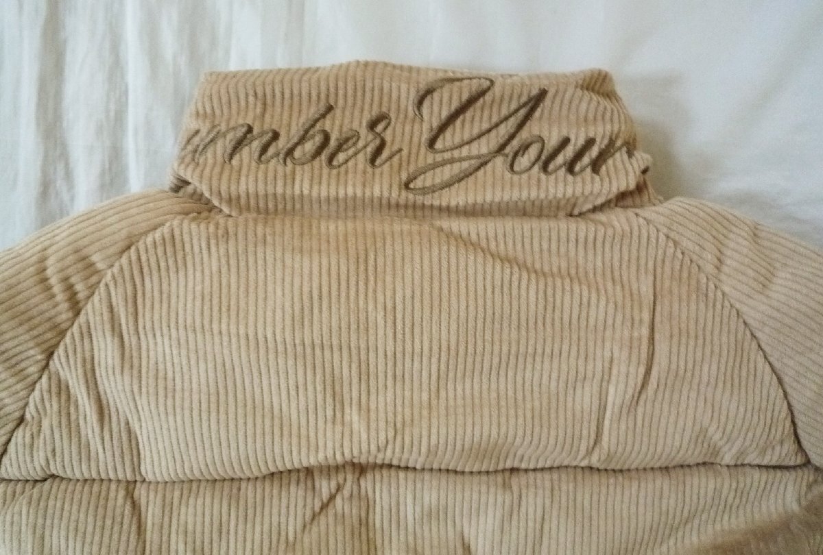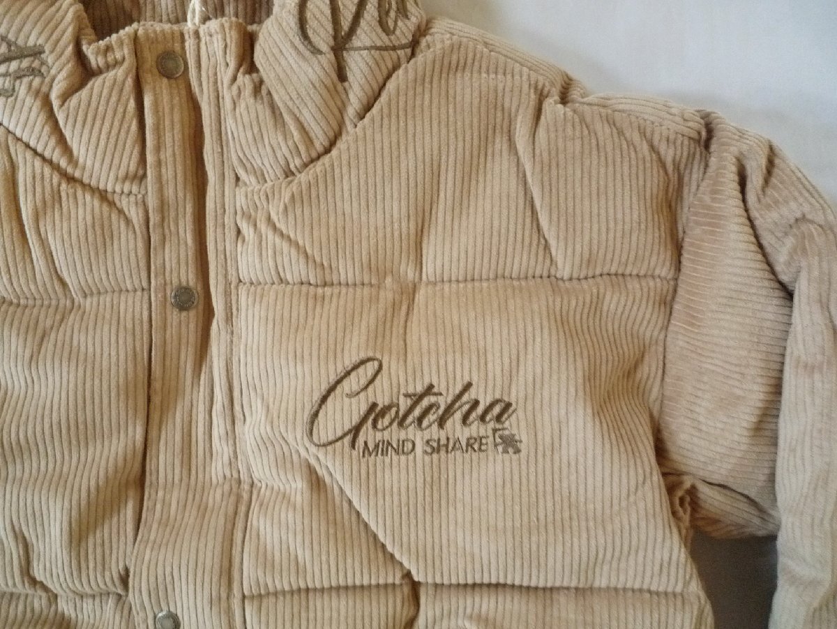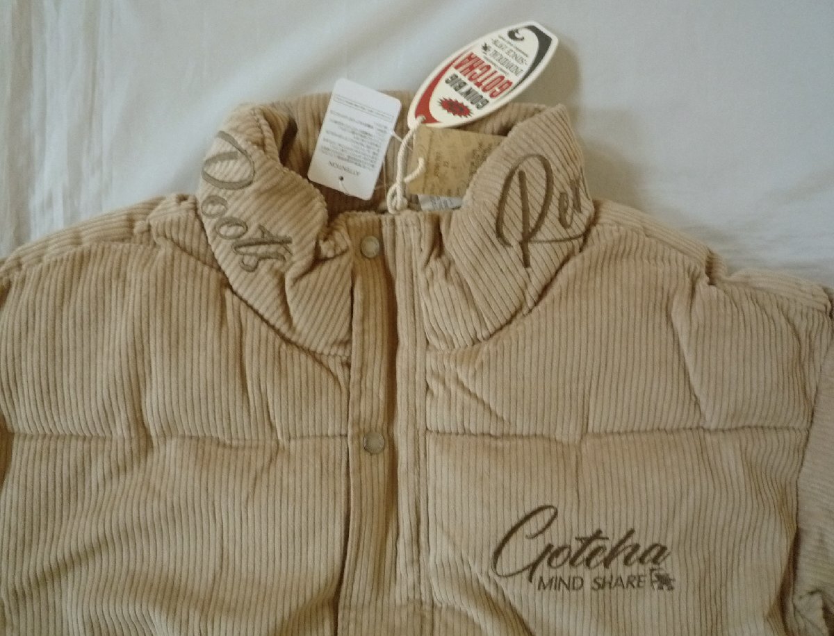 GOTCHA ガッチャ コーデュロイ中綿ジャケット 太畝 フェイクダウン スタンドネック 刺繍ロゴ ベージュ Lサイズ