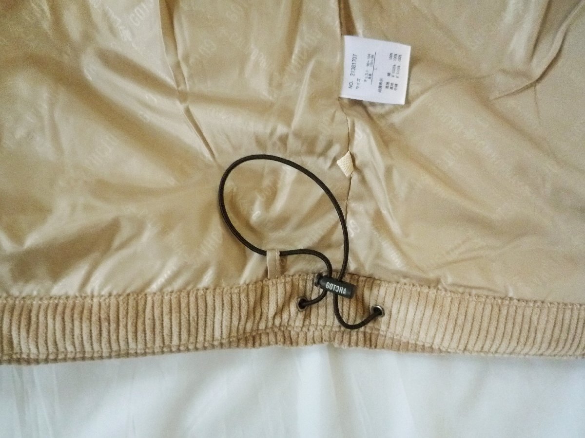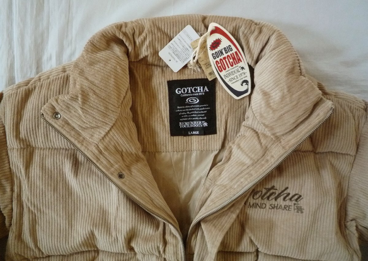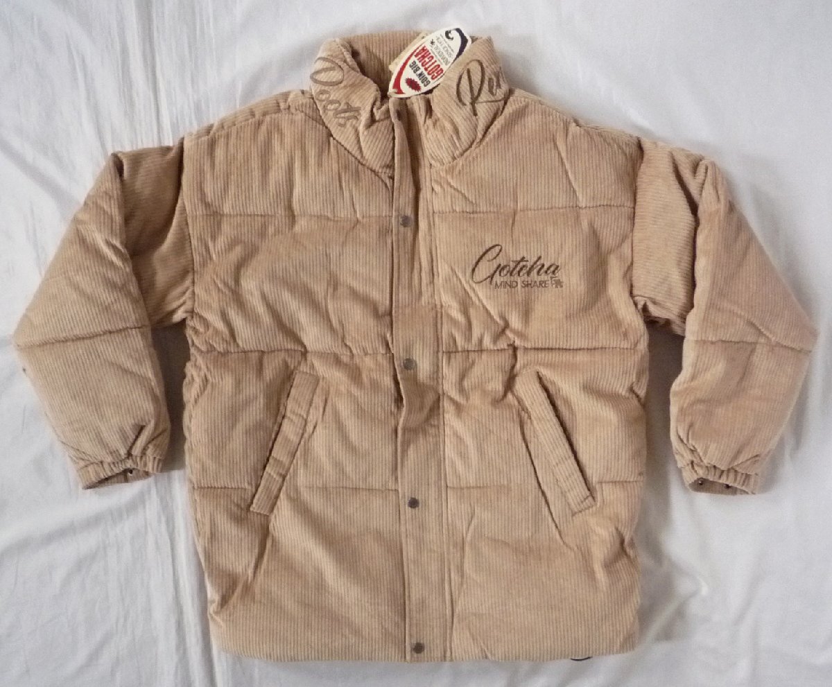 GOTCHA ガッチャ コーデュロイ中綿ジャケット 太畝 フェイクダウン スタンドネック 刺繍ロゴ ベージュ Lサイズ