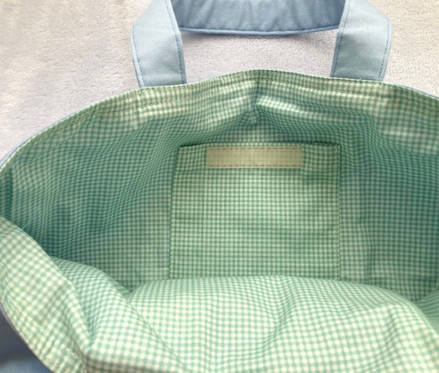 内側にはポケットを付け、お名前シールを貼りました。