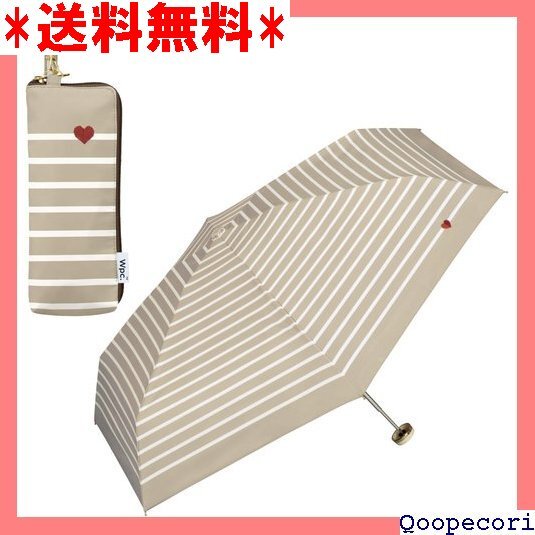 2024 Wpc. 日傘 遮光ハート刺繍ボーダー ミニ ベージュ ≪遮光&UVカット100% ・UPF50+・晴雨兼用≫ 折りたたみ傘 親骨50cm レディース 女性 コンパクト 小さい おしゃれ 可愛い 収納ケース 通勤 通学 801-14653-102 844