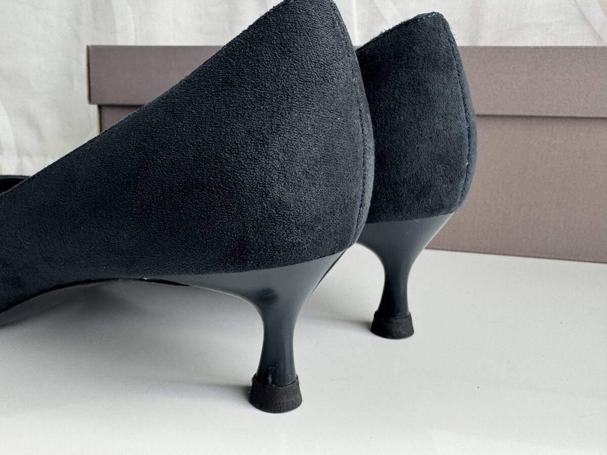 画像ではブラックに見えますがスエード部分は黒に近いモスグリーン、つま先&踵部分はブラックとなっています。