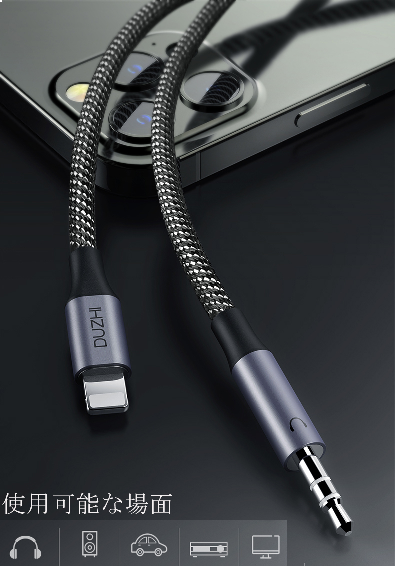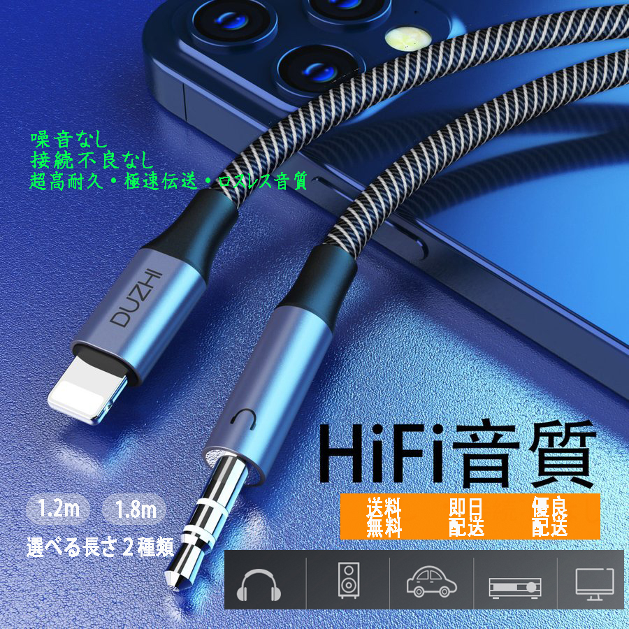 長さ...1.5m~2m未満 アンプ側プラグ形状...Lightning イヤホン側プラグ形状...3.5mmミニプラグ 導体材質...銀メッキ銅線 長さ...1.8m AUXオーディオケーブル iphone Lightning 変換ケーブル ステレオミニプラグ 高耐久ナイロン2色編み 長さ:1.8m 【3.5mmステレオミニプラグ】3.5mmステレオミニプラグAuxオーディオケーブル iphone Lightning 変換ケーブル、カー搭載用、iPod、TV(テレビ)、スピーカー、PC(パソコン)、ヘッドホン、iPad タブレット、MP3音楽プレーヤー、ゲーム機、AUX端子搭載の機器には全部適用。 【対応機種】iPod、iPhone、iPad、Kindle Fireタブレット、ほとんどのスマートフォン&タブレット、MP3音楽プレーヤー及び3.5mmステレオミニプラグ又はAUXポート付きの全て機器に対応。 ただし、Lightningからステレオミニプラグへの一方向のみです。ご注意ください。 【高耐久性】ナイロン2色編み構造で高耐久性達成、コアには高純度且太い無酸素銅採用、プラグには高純度銀メッキで高音質が楽しめます。 【安心な品質保証】何か問題がございましたらメールにて弊社にご連絡いただければ迅速にご対応致します。(商品の交換・返品返金サービスなど対応できます。) AUXオーディオ オーディオ ケーブル ステレオケーブル ステレオ iphone Lightning 変換ケーブル ステレオミニプラグ 高耐久ナイロン 2色編み