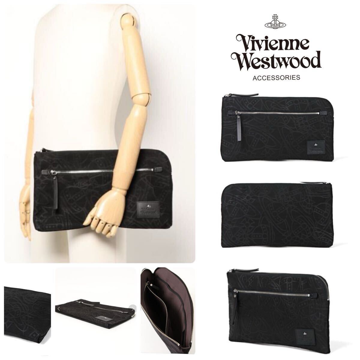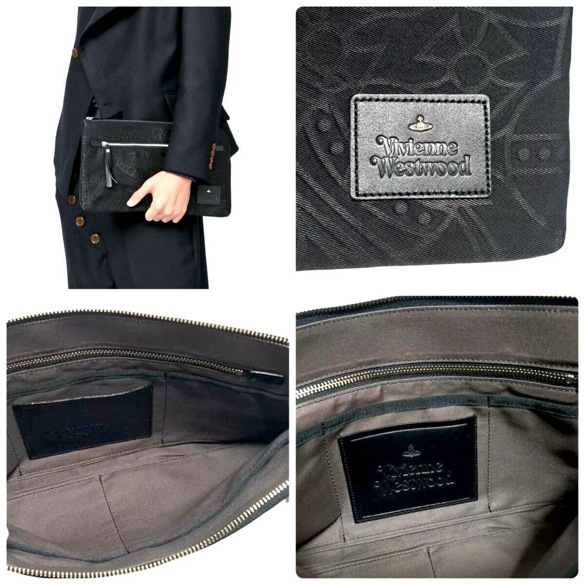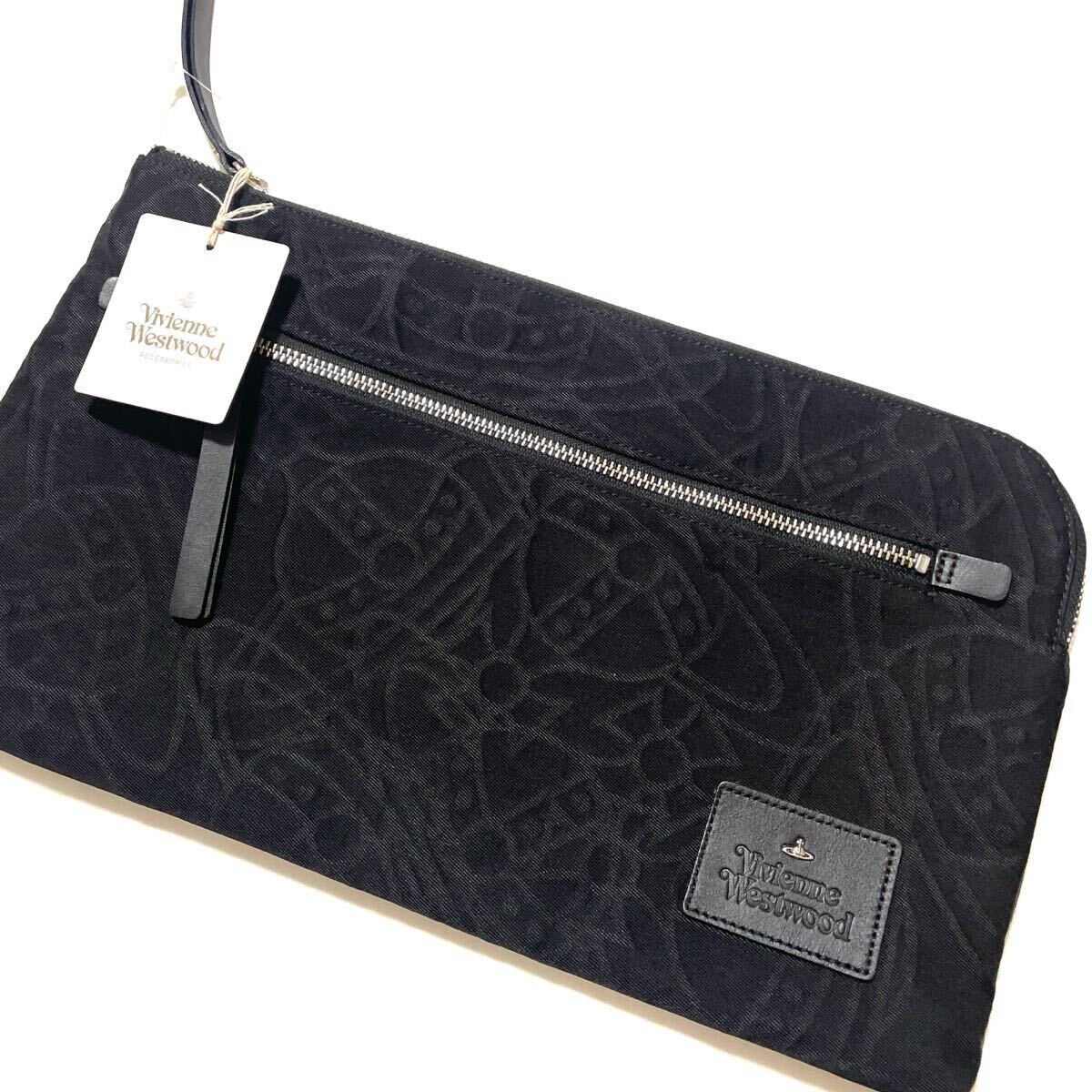 新品 ◆ Vivienne Westwood ◆ ヴィヴィアン ウエストウッド メンズ 日本製 クラッチバッグ セカンドバッグ ラインオーブエンボス ブラック