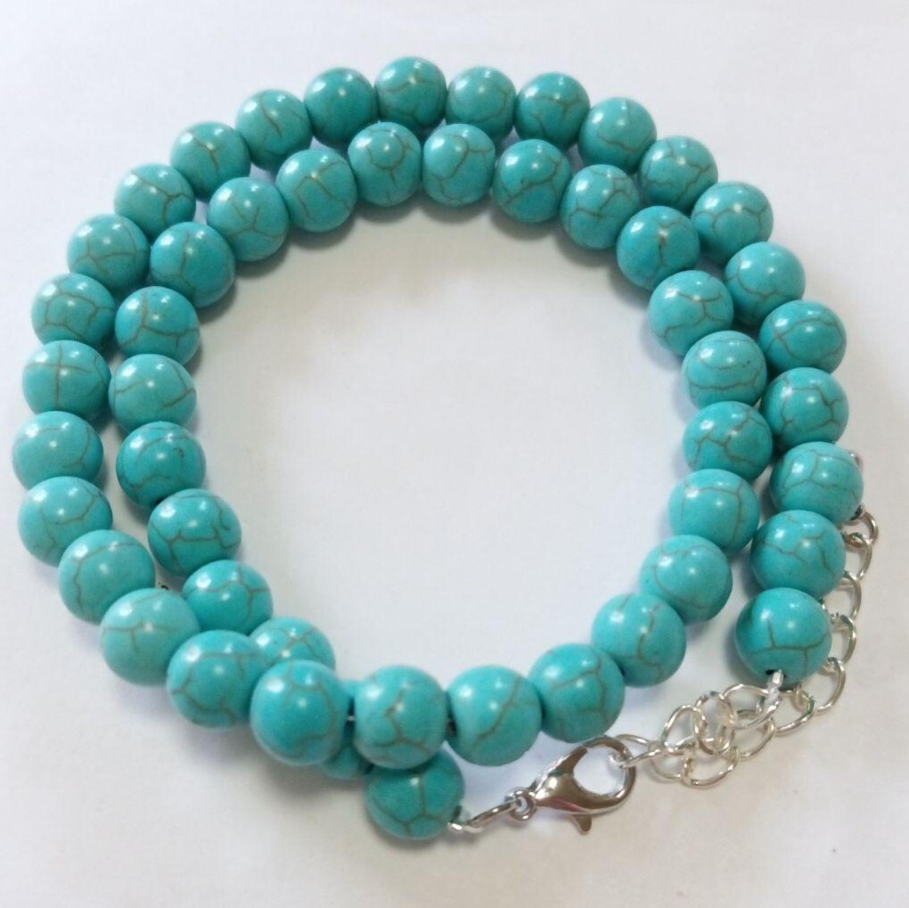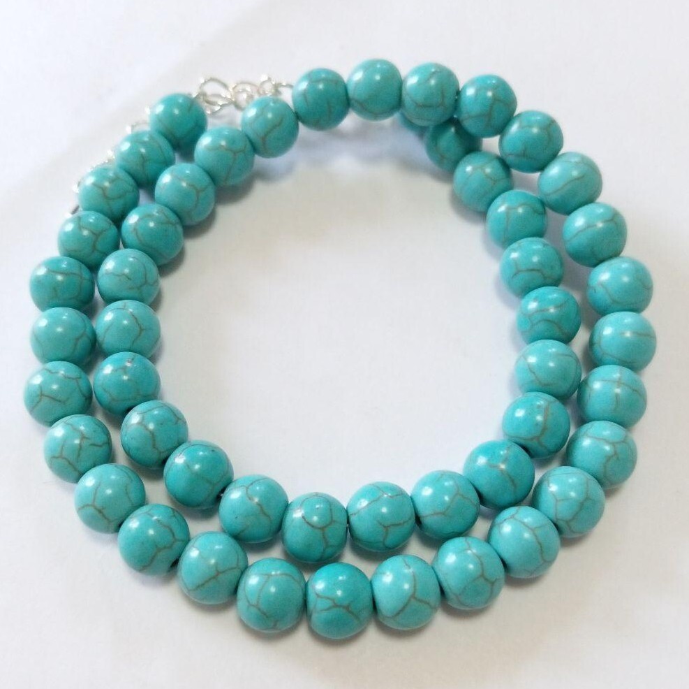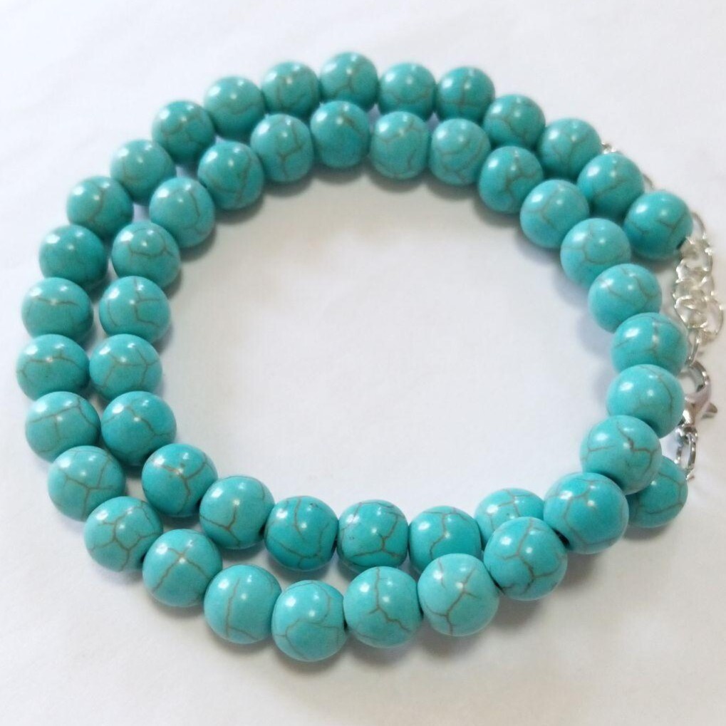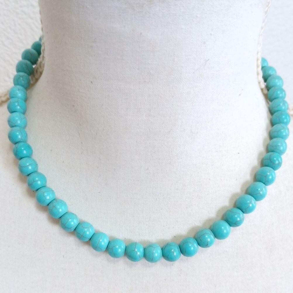 きれいな空青色、ハウライトターコイズのネックレスです。特有の斑模様があります。