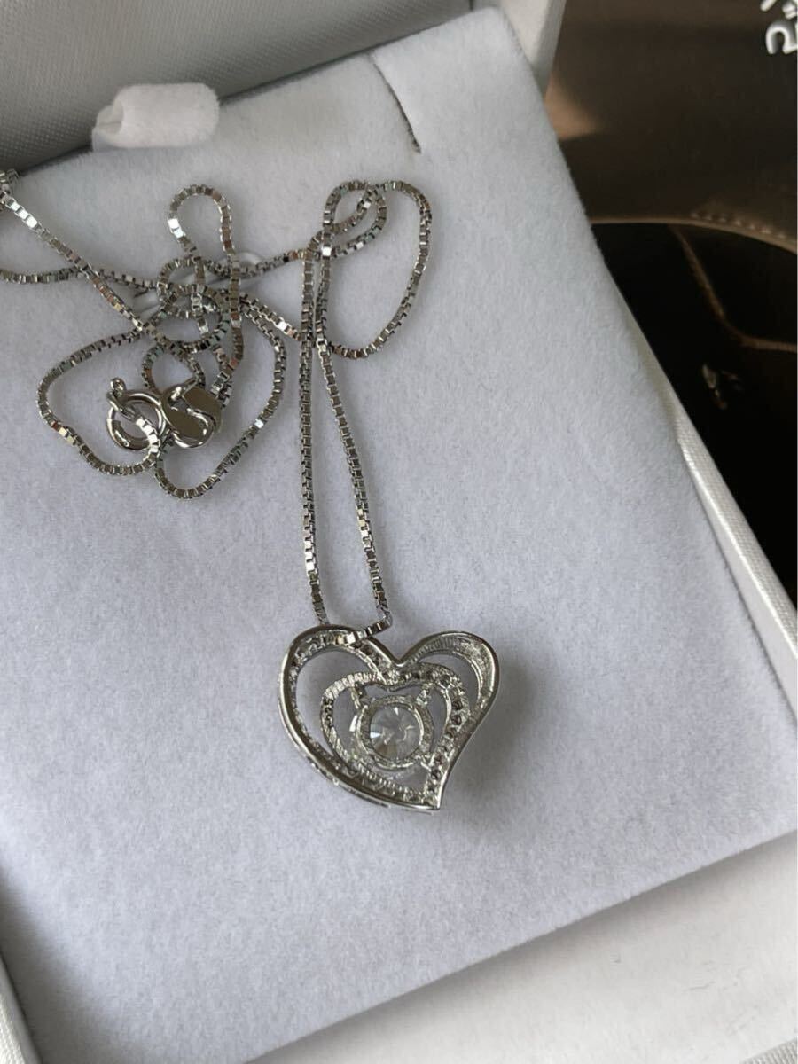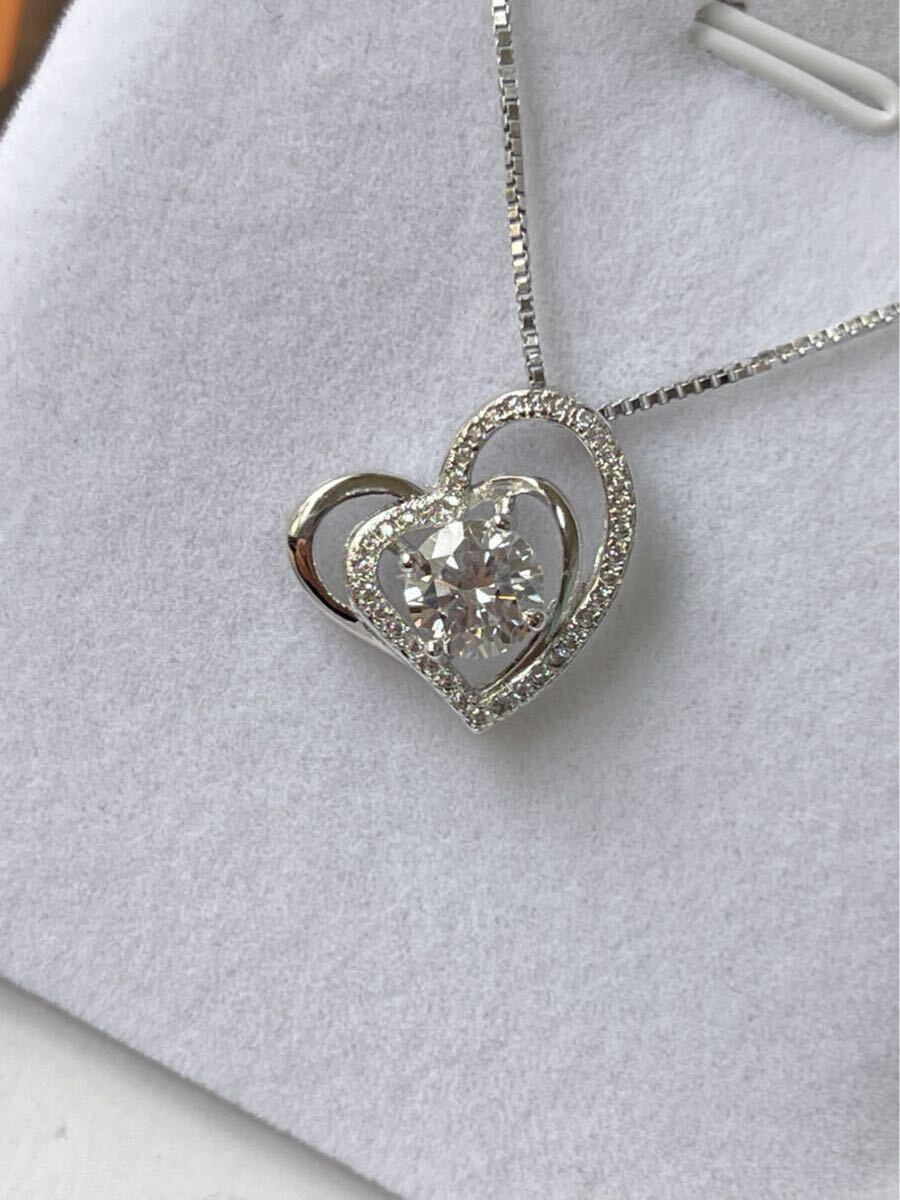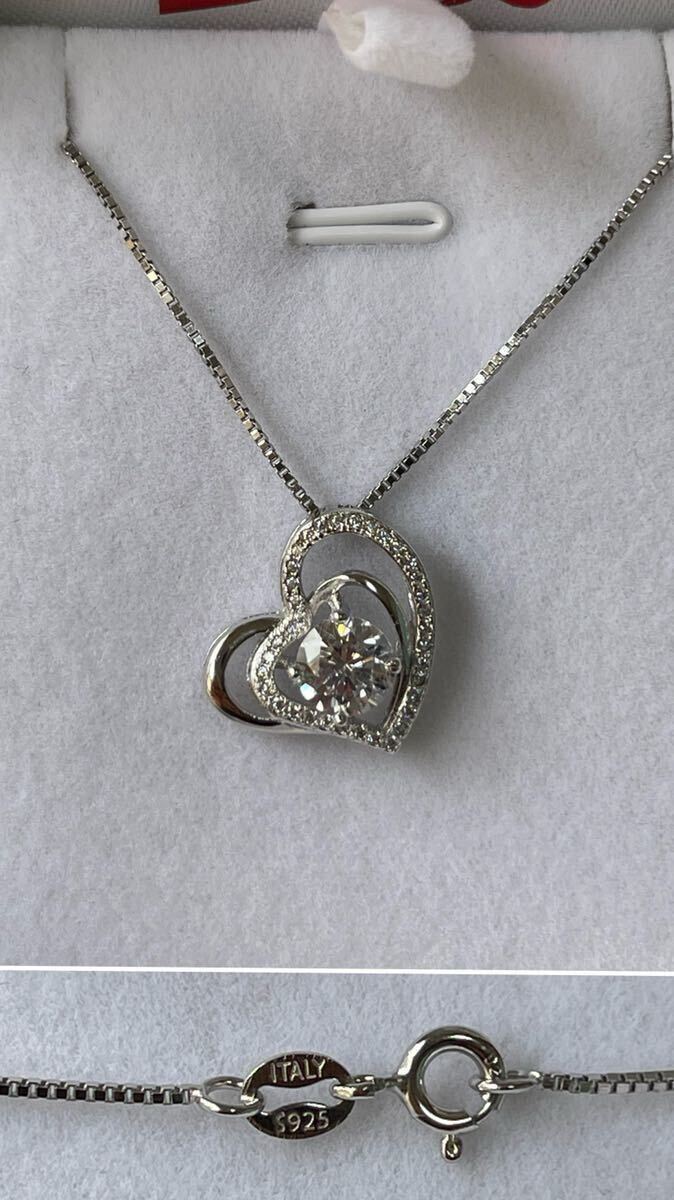 高級感溢れる キラキラ ハート純銀ネックレス☆“S925&ITALY”刻印有 CZダイヤモンド使用 上品な印象を与え♪ 専用ケース付 プレゼント最適