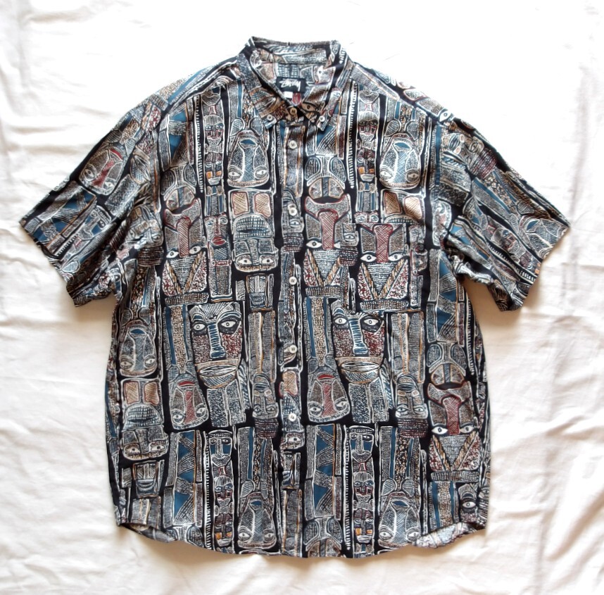 即決 デッドストック 80's オールド ステューシー マスク 仮面 トライブ 黒タグ シャツ ヴィンテージ アーカイブ VINTAGE OLD STUSSY