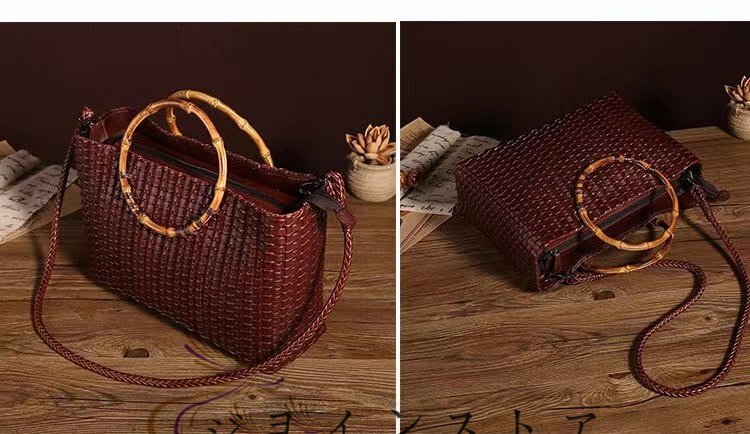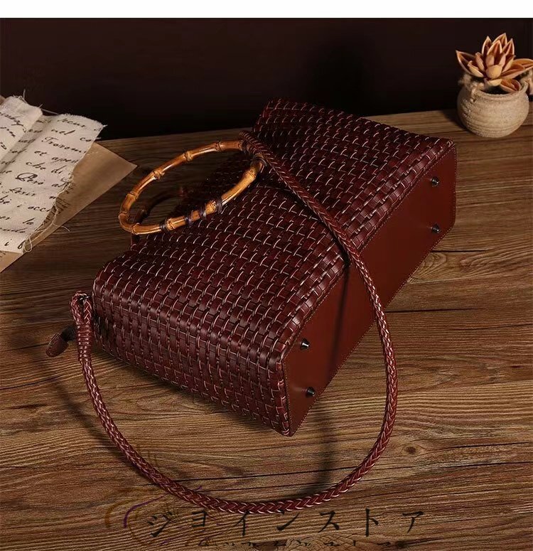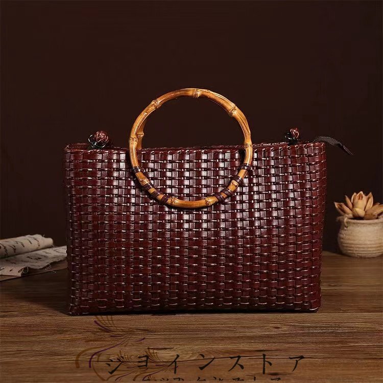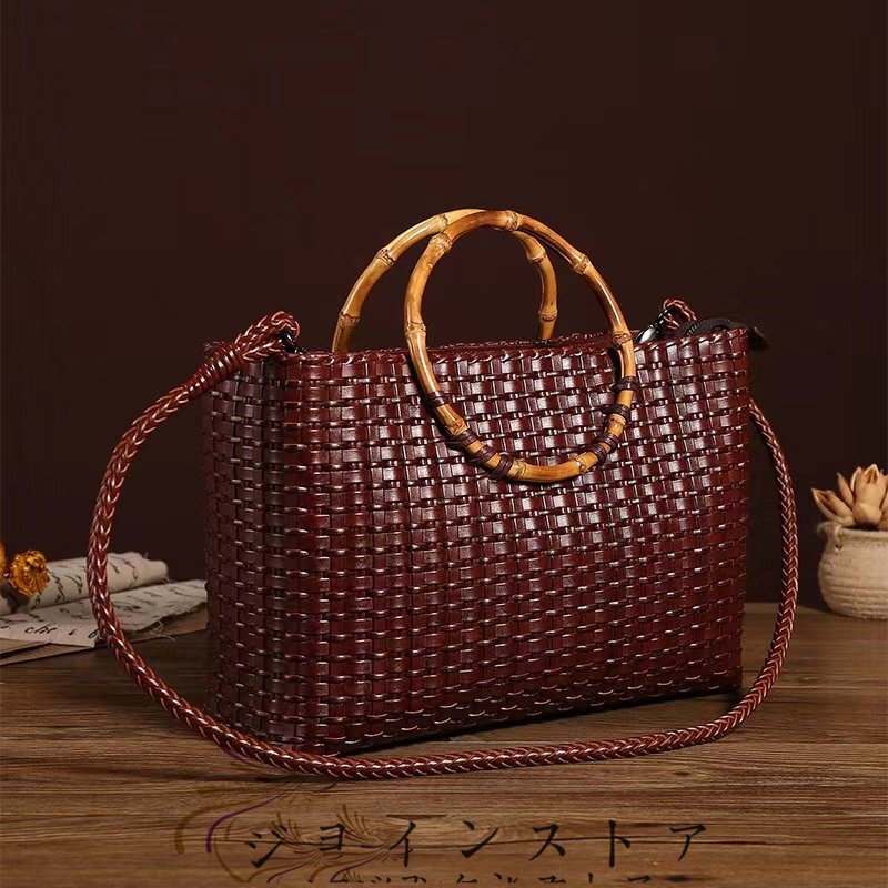 人気美品★ かごバック バスケット 籠バッグ 網代バッグ 天然素材 本革 牛革 トートバッグ 籠 バッグ ハンドメイド バンブーハンドル