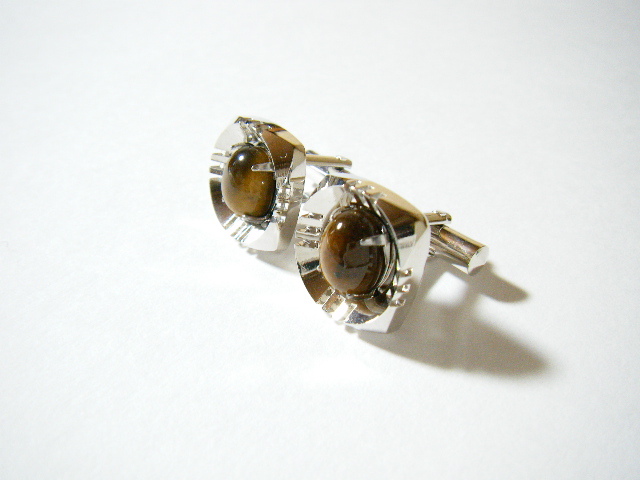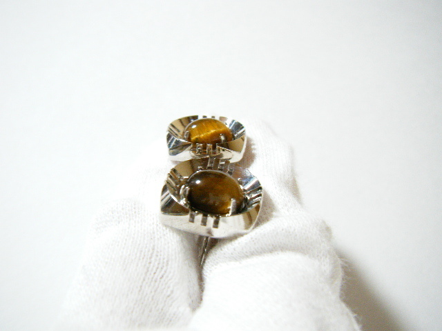 ★タイガーアイ カフス シルバーカラー【SU39】