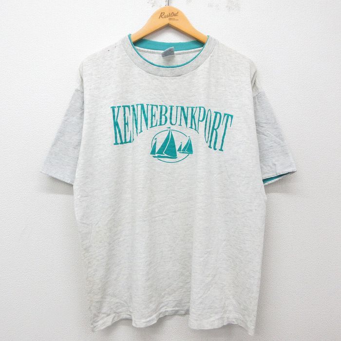 【商品名】 XL★古着 半袖 ビンテージ Tシャツ メンズ 90年代 90s ケネバンクポート 大きいサイズ コットン クルーネック USA製 薄グレー 霜降り