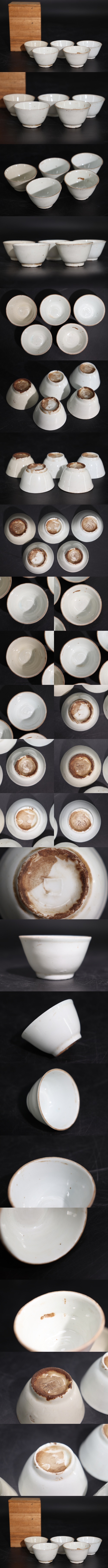 | 時代 底款 白磁 煎茶碗 五客 木箱付 / 茶器 煎茶道具 煎茶飾 検索: 北大路魯山人 中国美術 .G1624 |