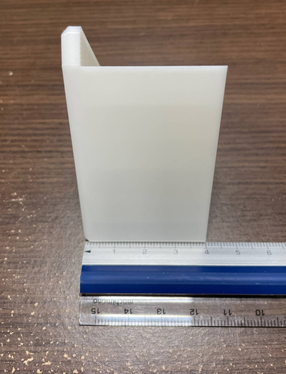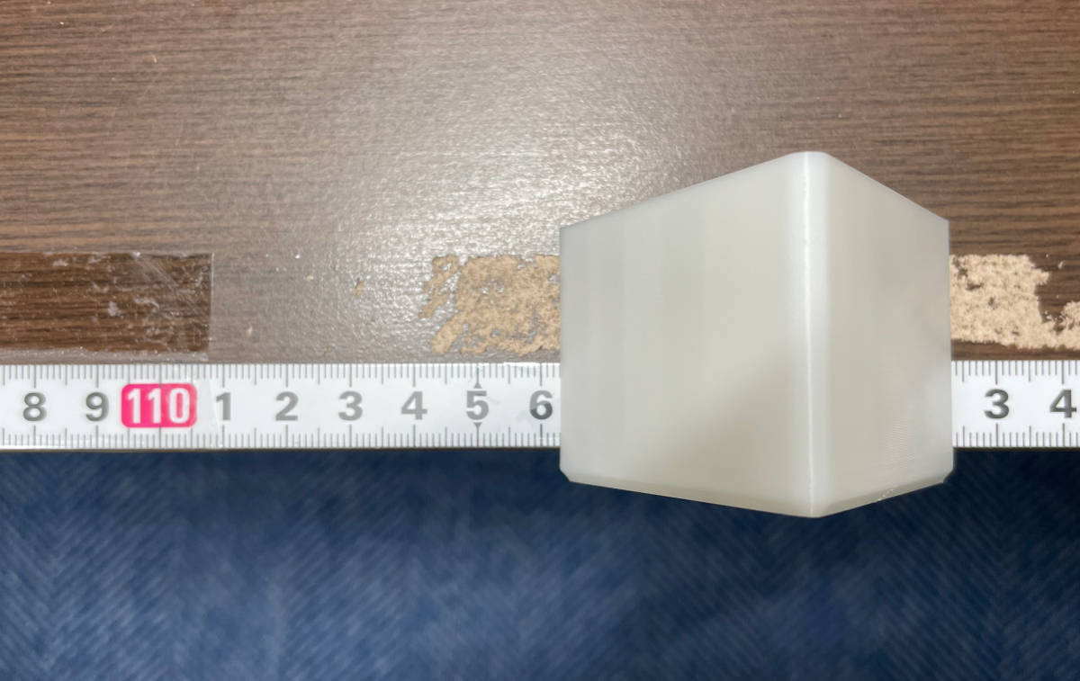 ※造形原理上、エッジ部にわずかな丸みが入ります。そのため、(かなり多めに見積もって)±1mm程度の誤差精度(±0.04inch程度)とさせていただきます。±0.04inchよりもさらに細かな精度での測定をご希望の方は、ご遠慮ください。