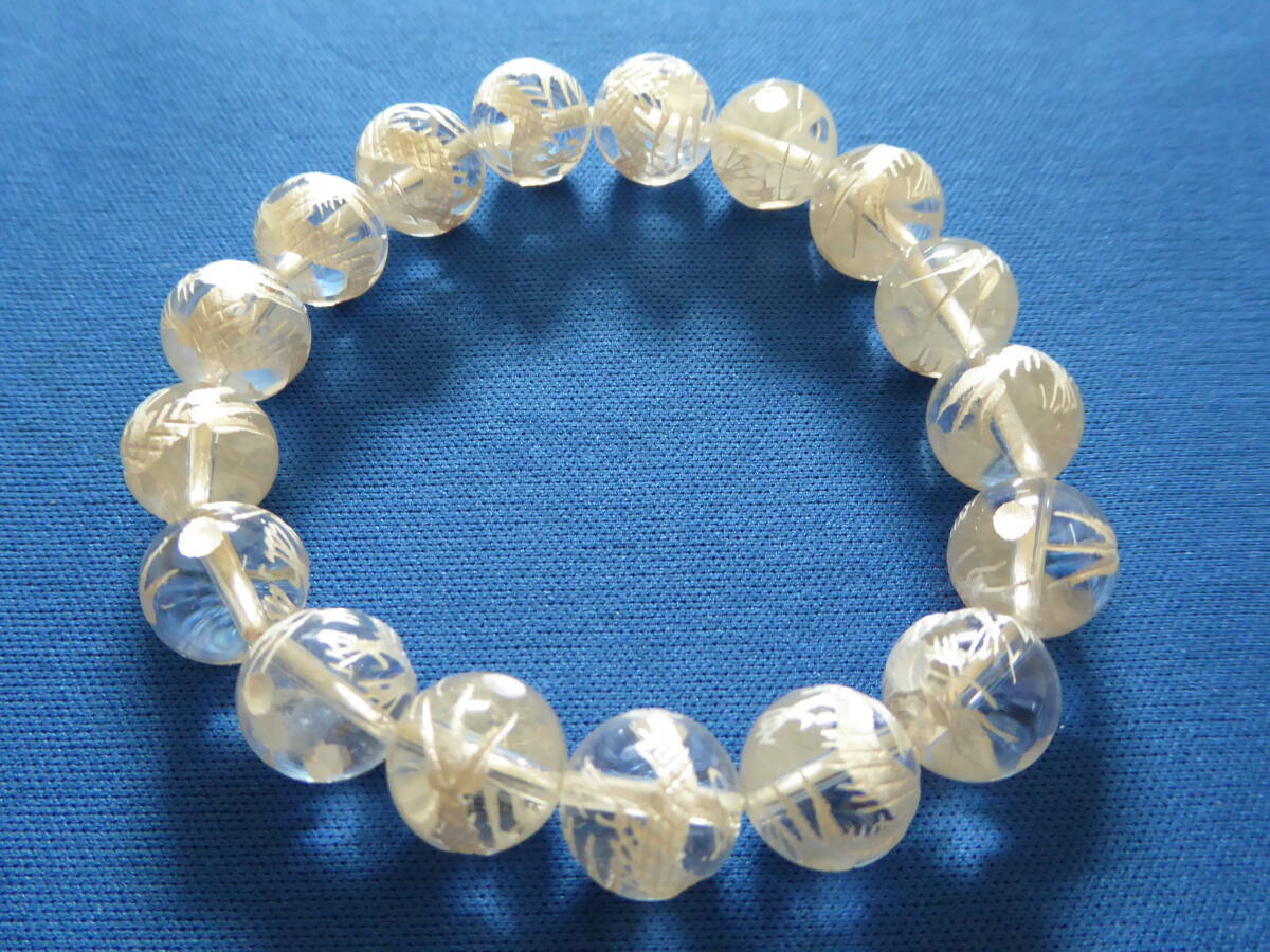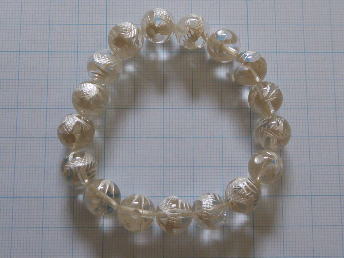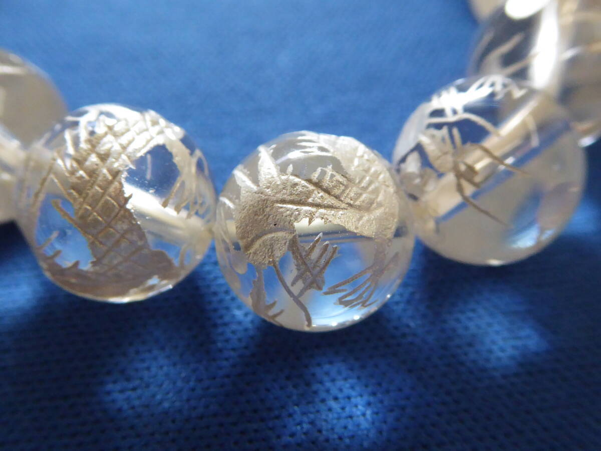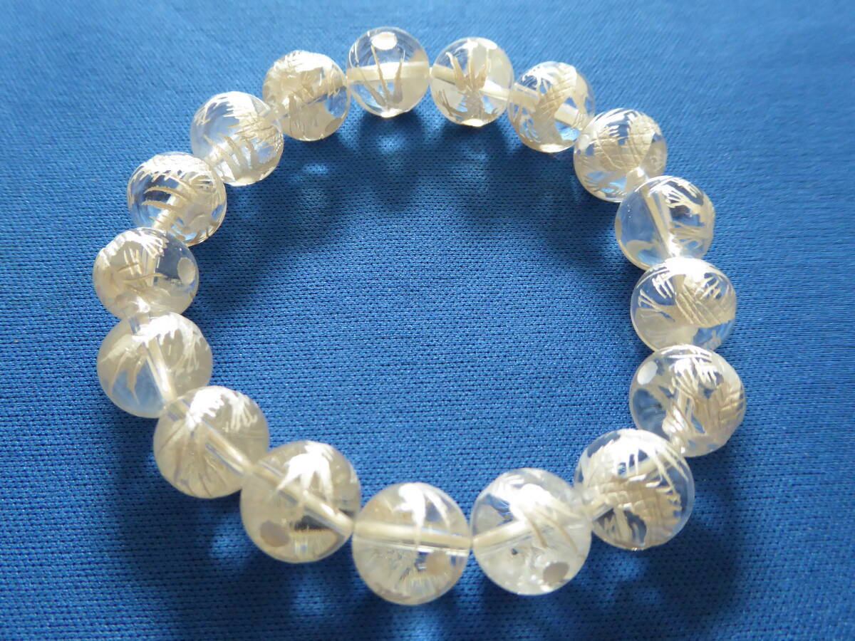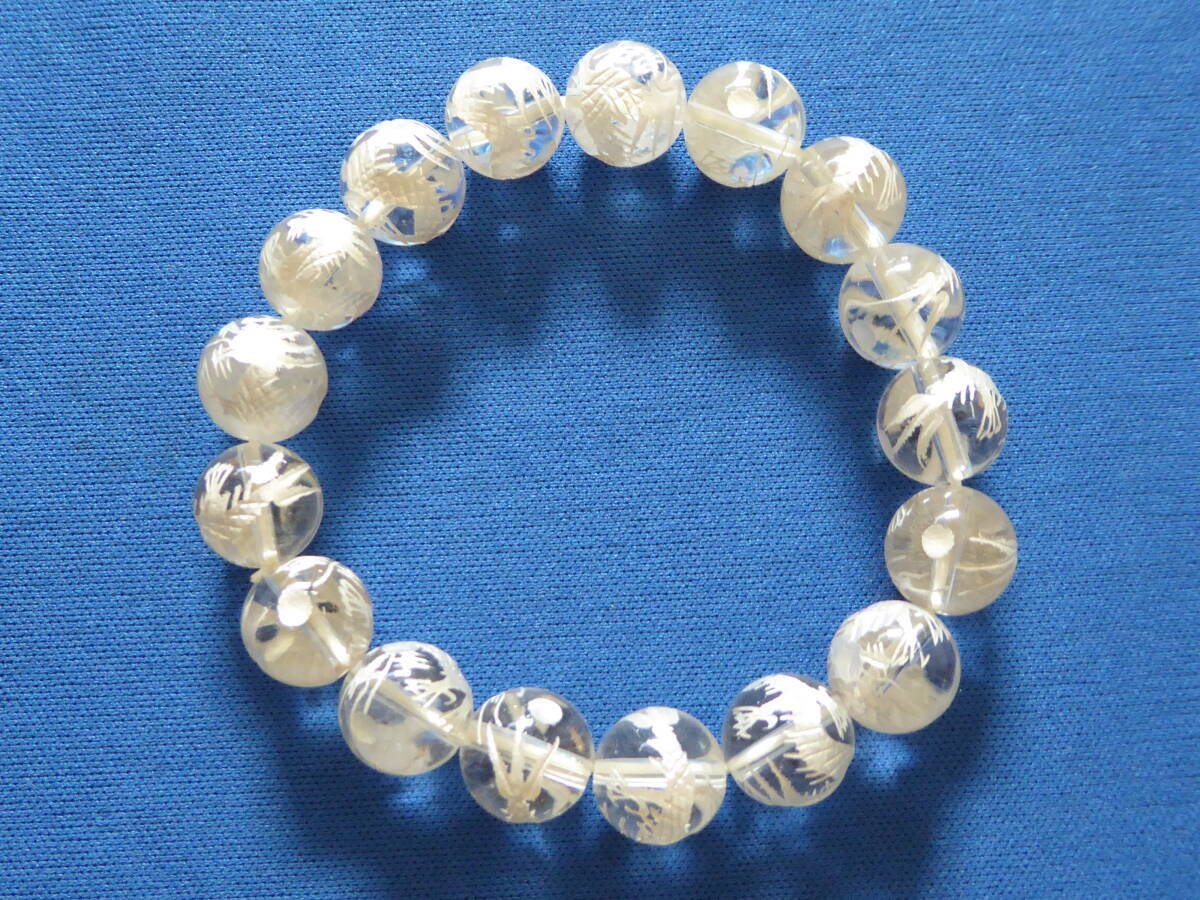 水晶のブレスレットで銀色の竜(龍/リュウ)が彫られています。