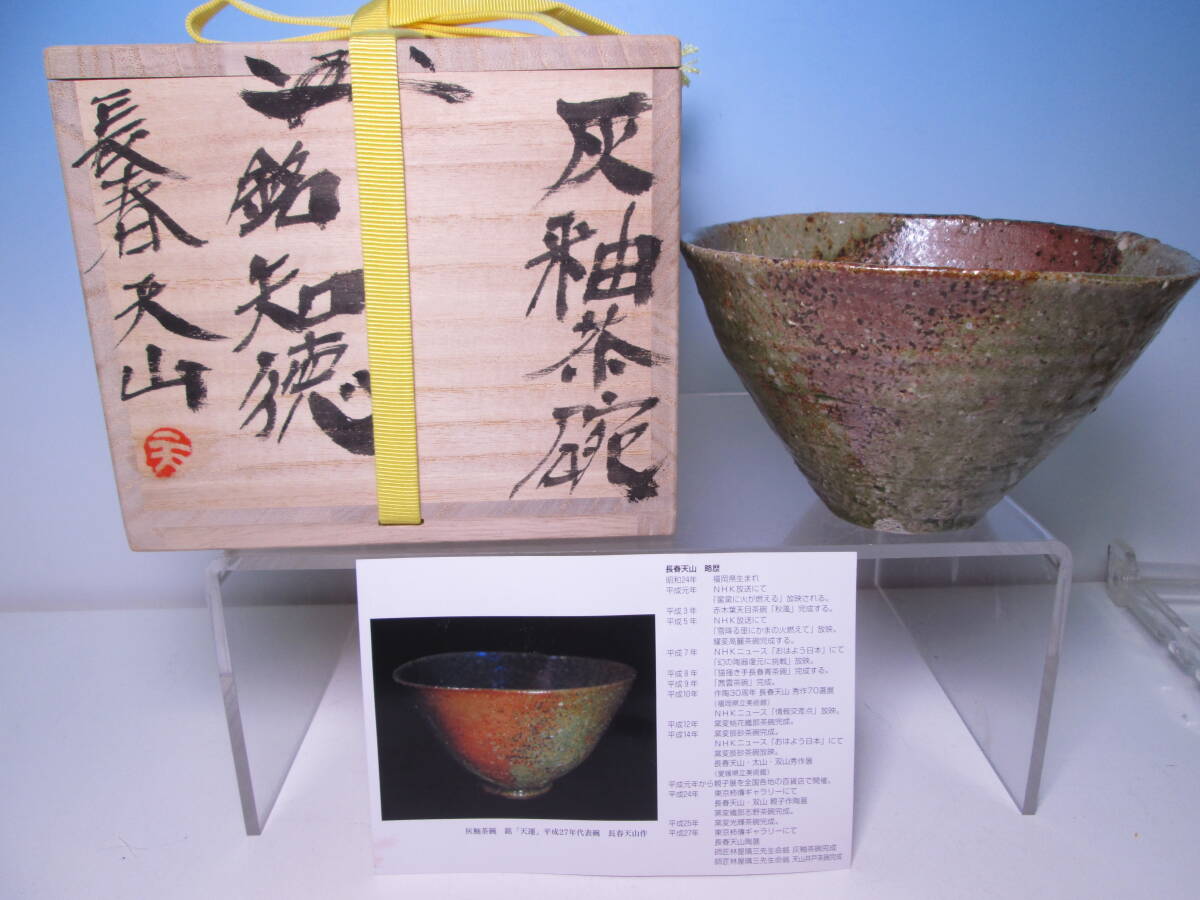 ☆長春天山 灰釉 茶碗『知徳』共箱