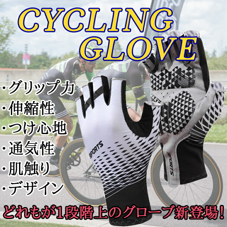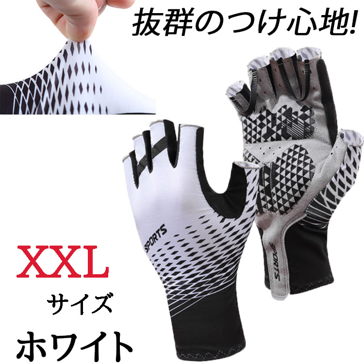 サイクリンググローブ サイクリング グローブ 自転車 手袋 ウェア 半指 指切り フィンガーレス アウトドア 夏 ホワイト XXL