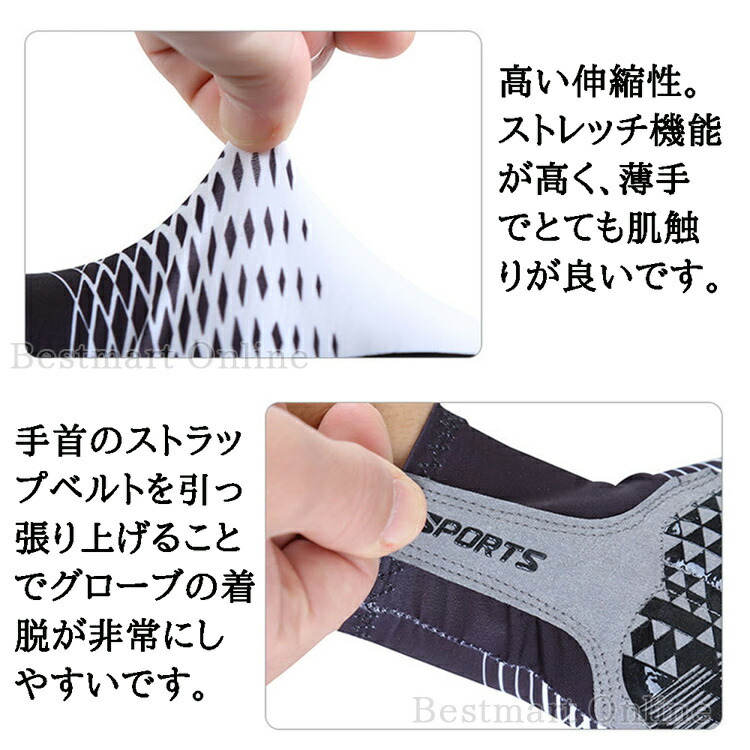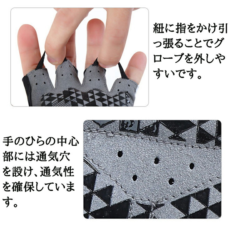 手のひら側にはシリコン加工が施された特殊ゲルパッドとなっており、高い滑り止め効果があります。手の甲側はストレッチ素材で高い伸縮性があり、何かを握ったときにも拳や指に圧迫感を感じません。