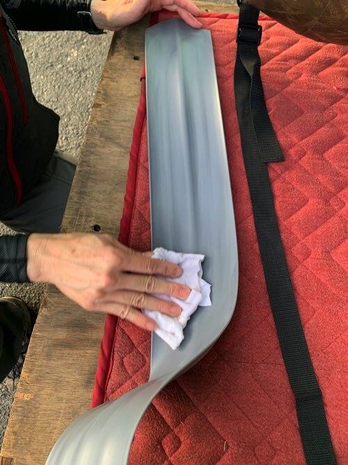 船体の貼り付け面の汚れ、油分を落として乾かす。