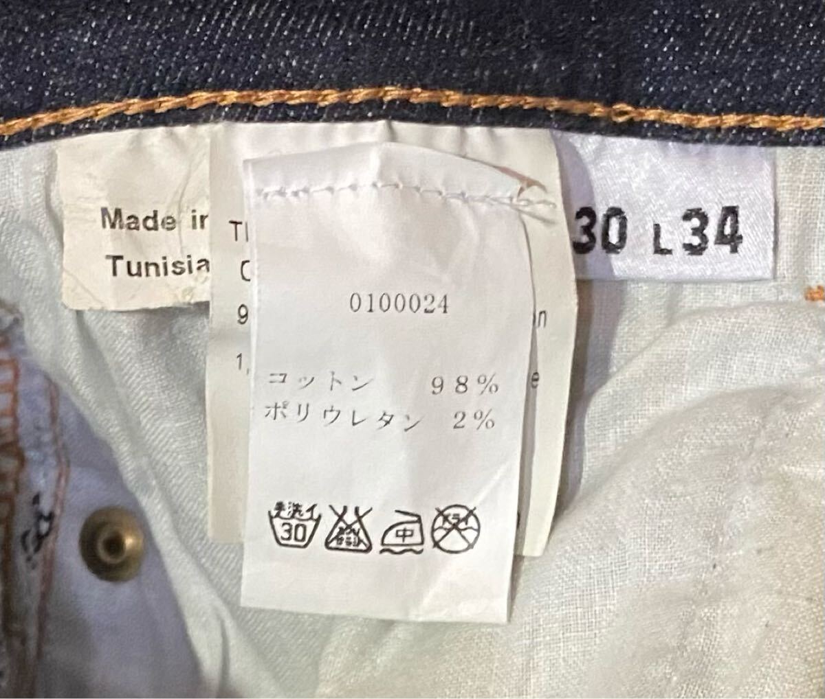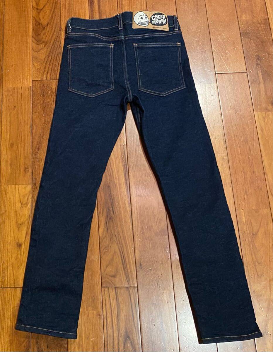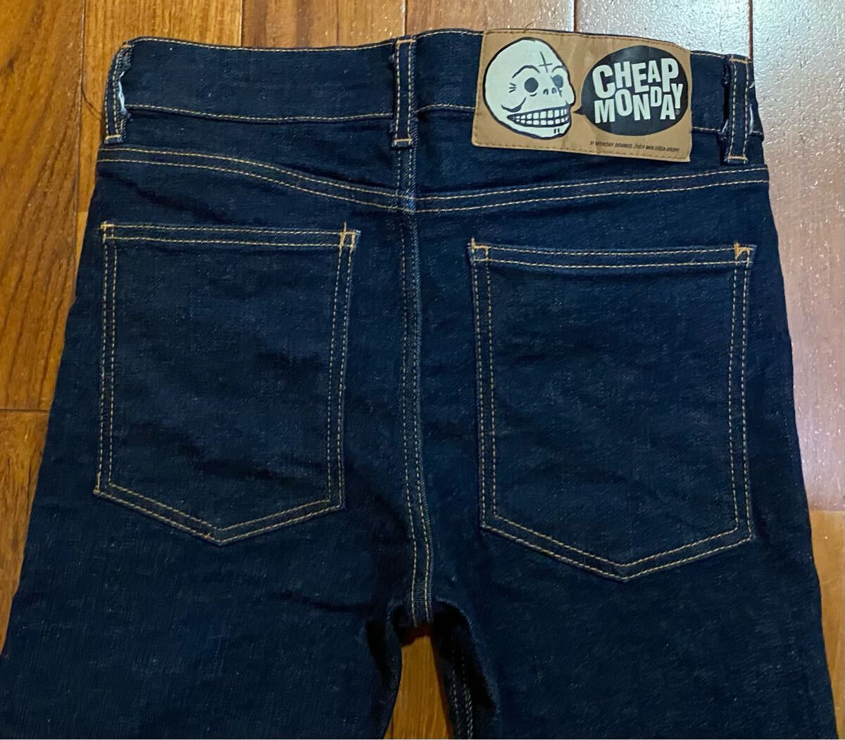 チープマンデーのストレッチスキニーデニム(ジーンズ)、TIGHT ORIGINAL UNWASH 0100024です。色はインディゴブルーです。USEDで裾直ししておりますが状態は良いです(10段階中8程度)。生地はストレッチ入りで綿98%、ポリウレタン2%です、紙パッチ、ジッパーフライです。正規品です((有)ケイスリー、チュニジア製)。サイズはW30でウエストは重ねずに平置きで約71cm、ヒップ約80cm、股上約25cm、股下約69cm、股下15cmのふともも部分約42cm、裾まわり約31cm、重量約500gです。発送はゆうパケットポストになります。