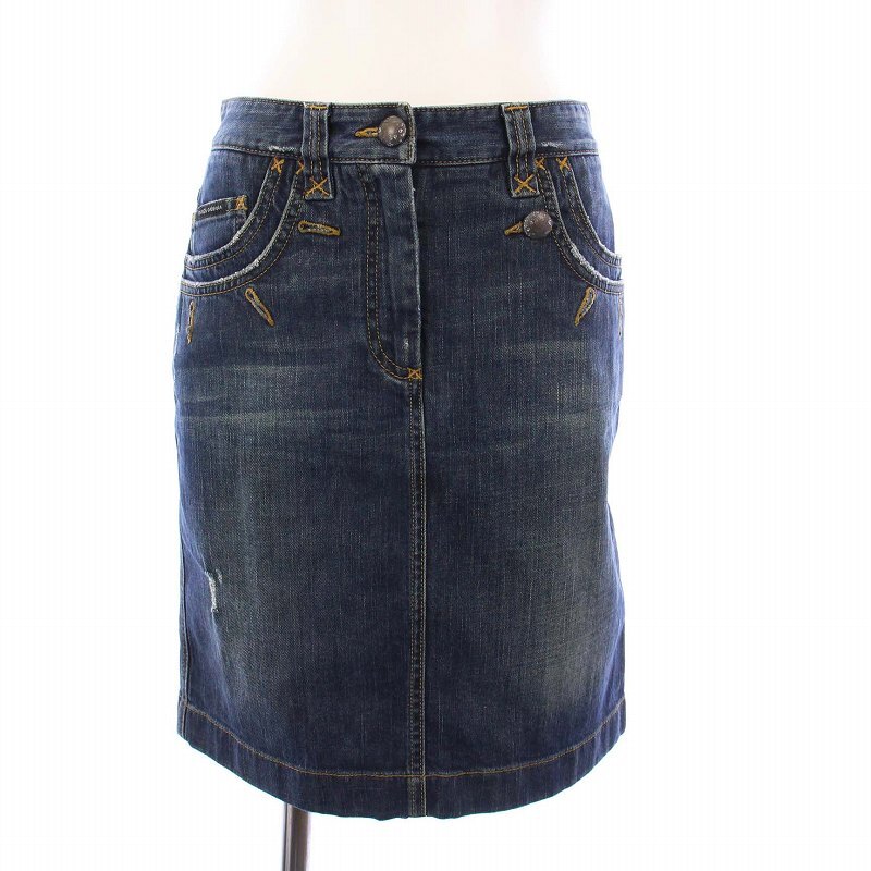 ドルチェ&ガッバーナ ドルガバ DOLCE&GABBANA デニムスカート ミニ タイト ダメージ加工 38 インディゴ /KH レディース