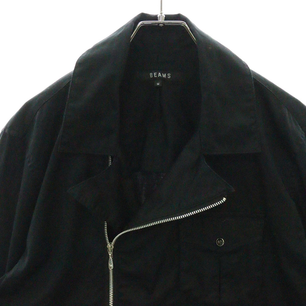 BEAMS ビームス フロントポケット アシンメトリージップアップ コットン 長袖シャツ ロングスリーブ ブラック 4211-0206-856