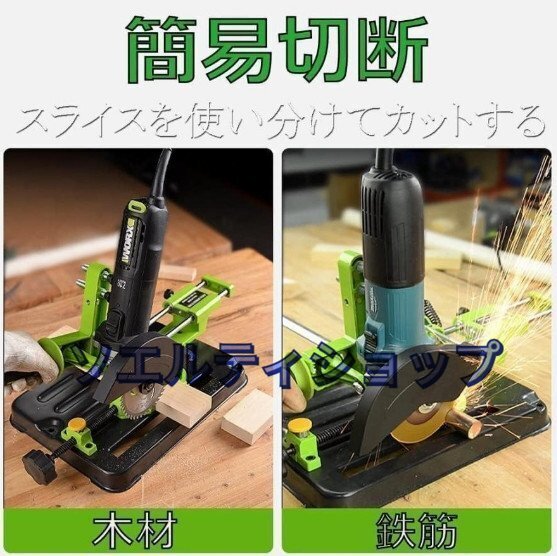 【用途】ディスクグラインダーを取り付けて、鉄筋、鉄片切断作業 に使用しています。微調整つまみは、フィクスチャの微調整とロッ クを行い、切削をより安定させるために使用します。