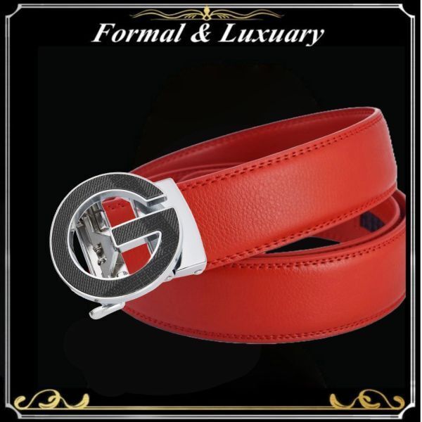 ベルト j38【赤】レッド 穴なし 無段階調整ベルト ゴルフベルト 人気 オートロック メンズ 革 ジーンズ ビジネス カジュアル