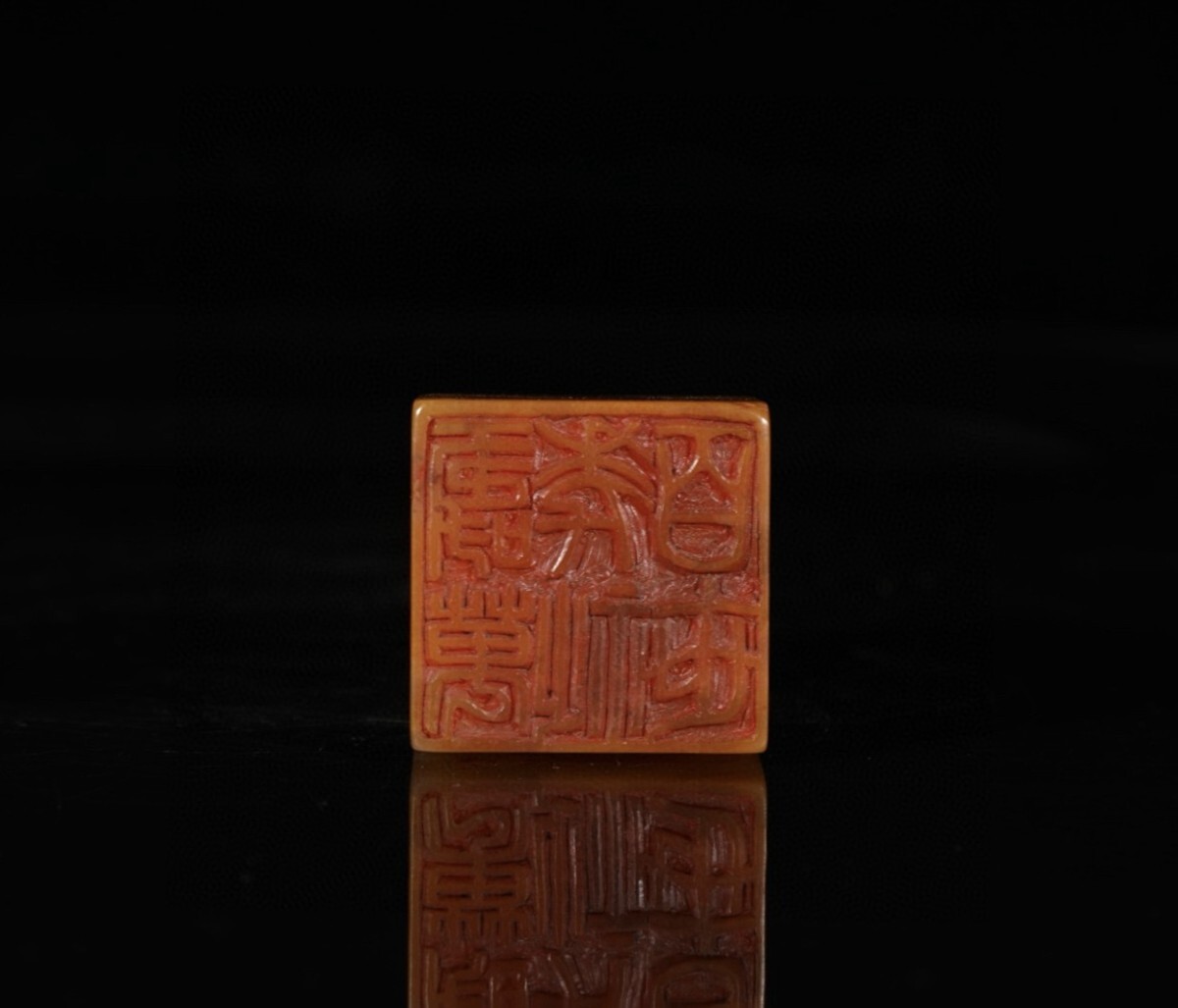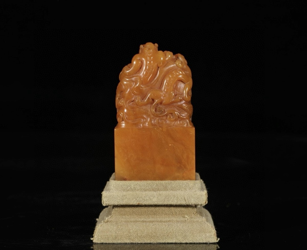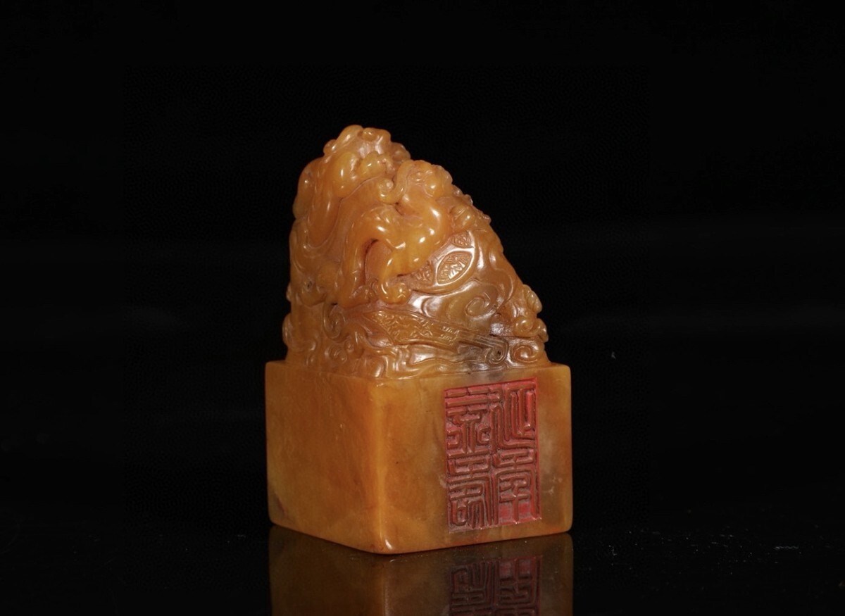 「清 福厂居士治石 老寿山石 田黄石彫り 群魑龍紋 印章 印鑑」極細工 擺件 古賞物 中国古美術 旧蔵出