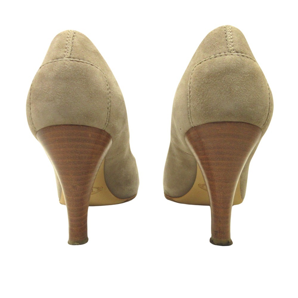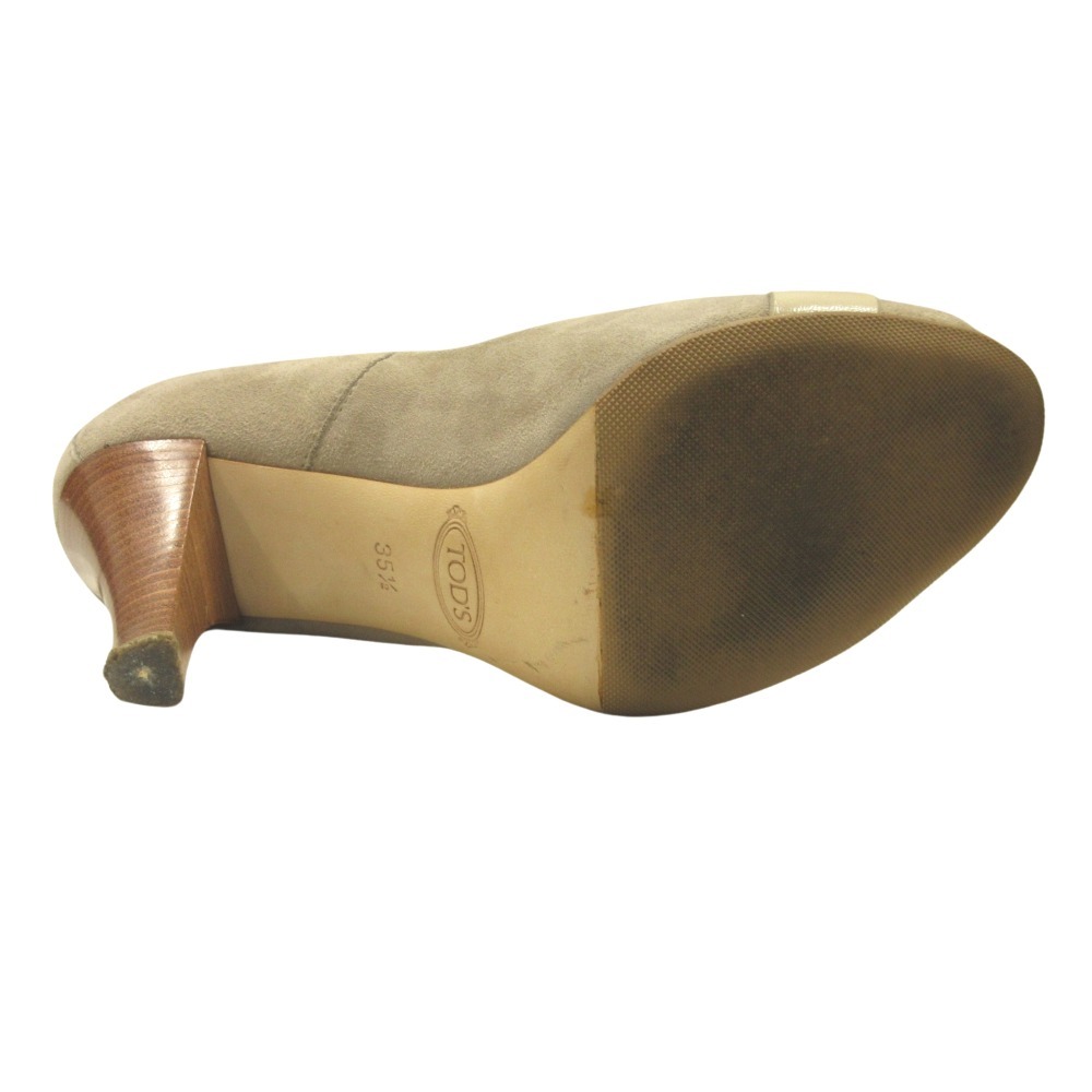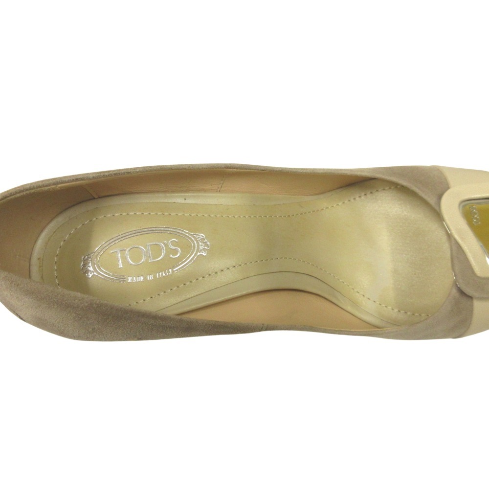 良品 TOD'S トッズ オープントゥ パンプス シューズ 靴 ヌバック レザー バックル 35.5 23cm ベージュ レディース