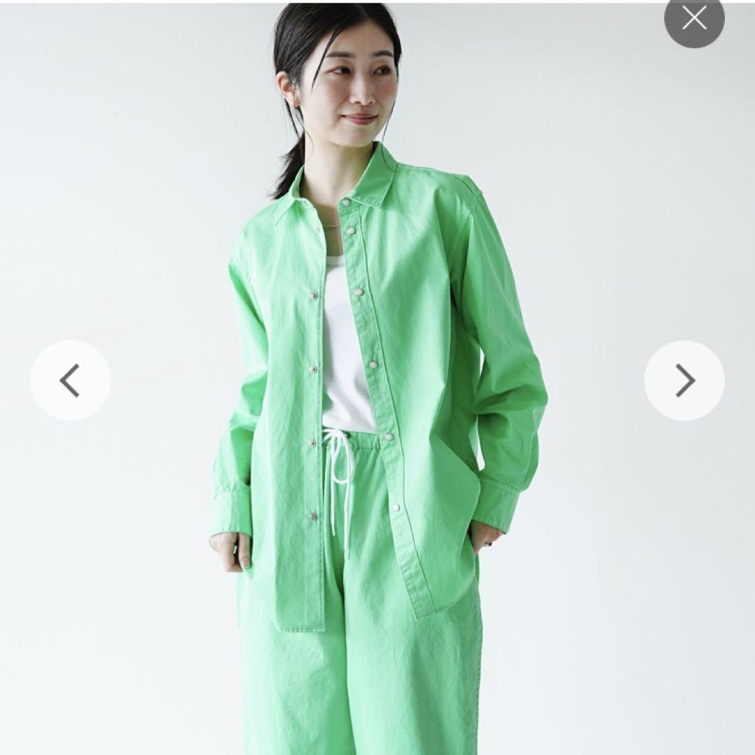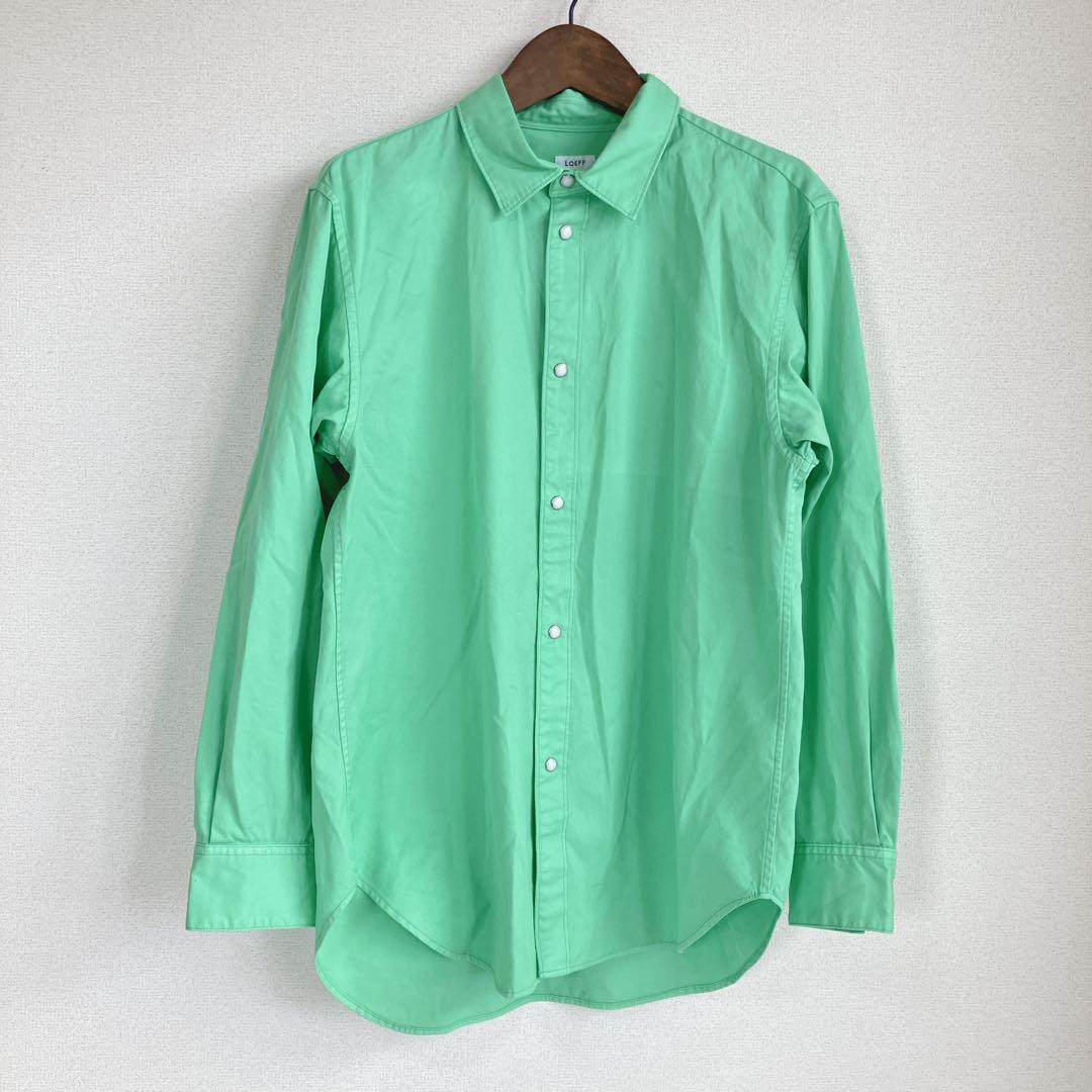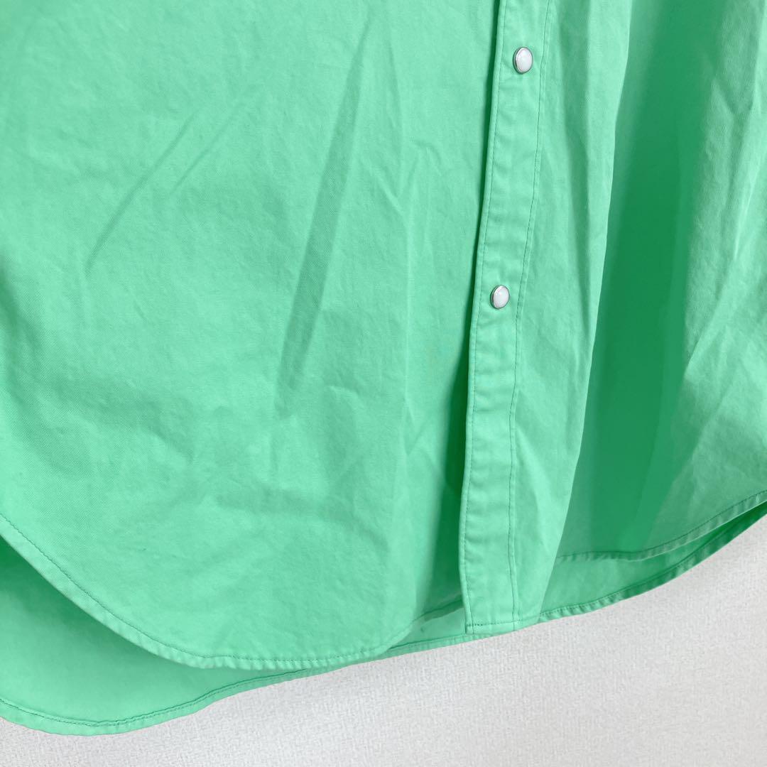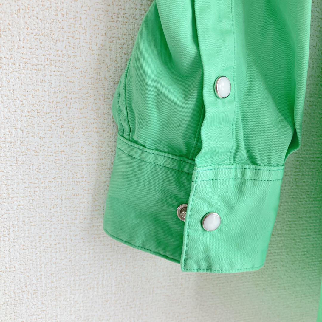 スナップボタン 無地 長袖 グリーン