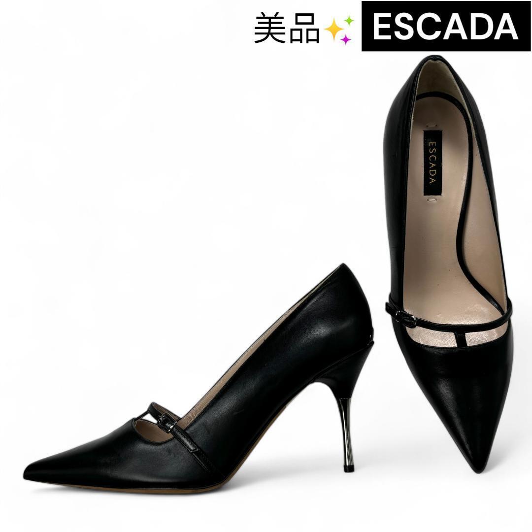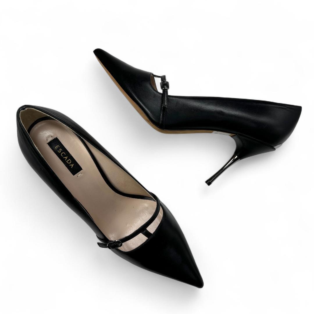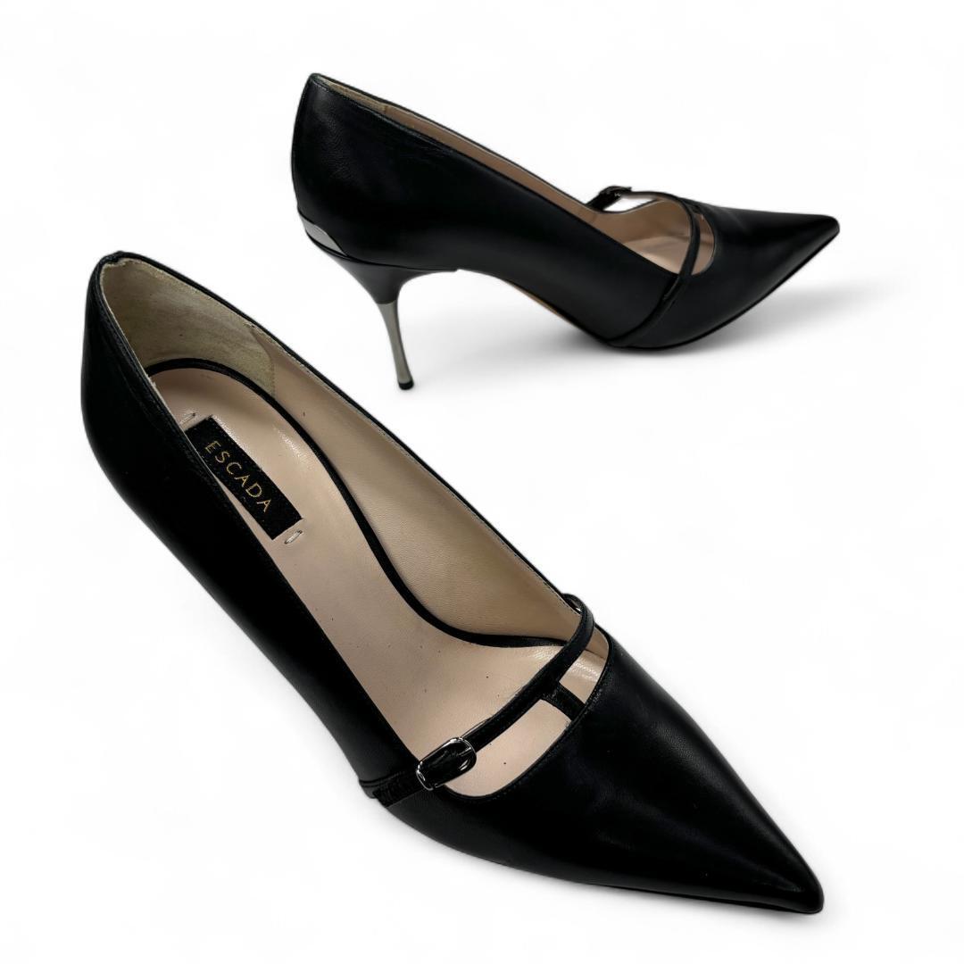 定価11万 美品 エスカーダ Escada ストラップ パンプス ブラック 38 (約24.5cm) レディースシューズ k1564