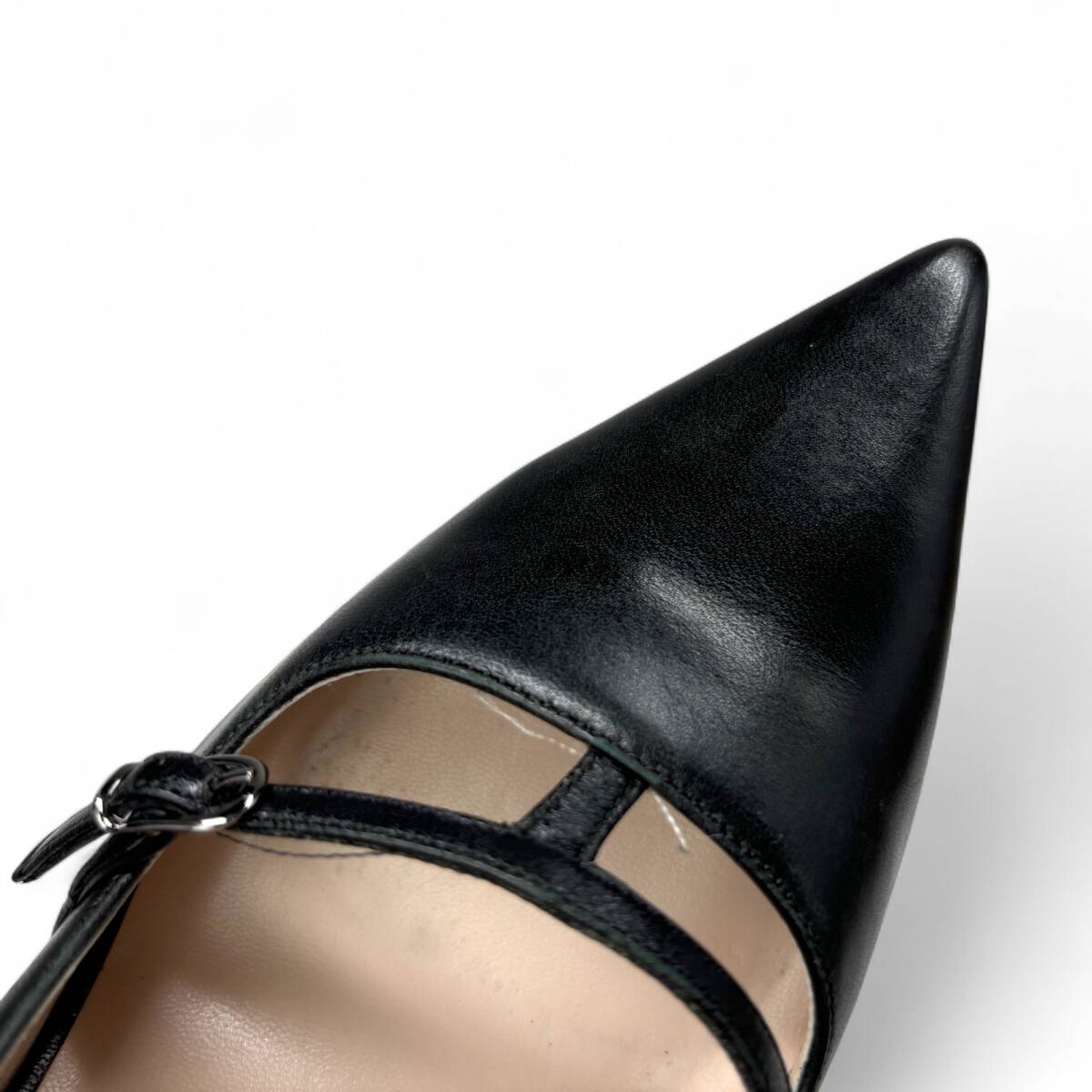 シャープなポインテッドトゥと、繊細なストラップデザイン