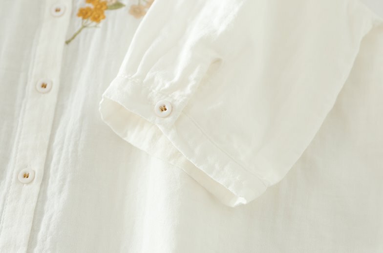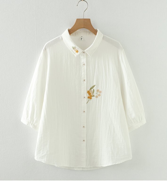 :.* L*:.レディーストップス 中袖シャツ 綿コットン 可愛い刺しゆう ダブルガーゼ肌触りいい 通気性いい シャツ トップス ブラウス