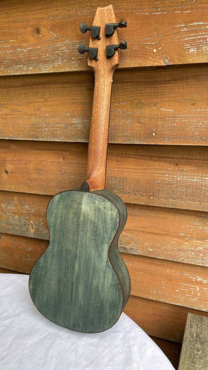 | 商品説明 | OURーi工房の藍染コンサートウクレレです。 自然豊かな四国徳島で阿波藍を栽培して、泥藍(沈殿藍)で藍染ウクレレを製作をしています。 完成は2025年5月で通算126本目のウクレレ OURーi C ウクレレ仕様 トップ:藍染メープル サイド、バック:藍染メープル ネック:マホガニー バインディング:ローズウッド ヘッドプレート:藍染メープル 指板:ローズウッド ブリッジ:ローズウッド スケール:385mm ナット、サドル:牛骨 塗装:藍染、オイル仕上げ ハードケース付き | |