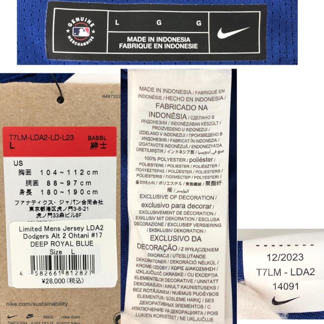 | NIKE ナイキ タグ付き Limited Mens Jersey LDA2 Dodgers Alt 2 #17 大谷翔平 レプリカユニフォーム SIZE: L ブルー MH632025052901 | |