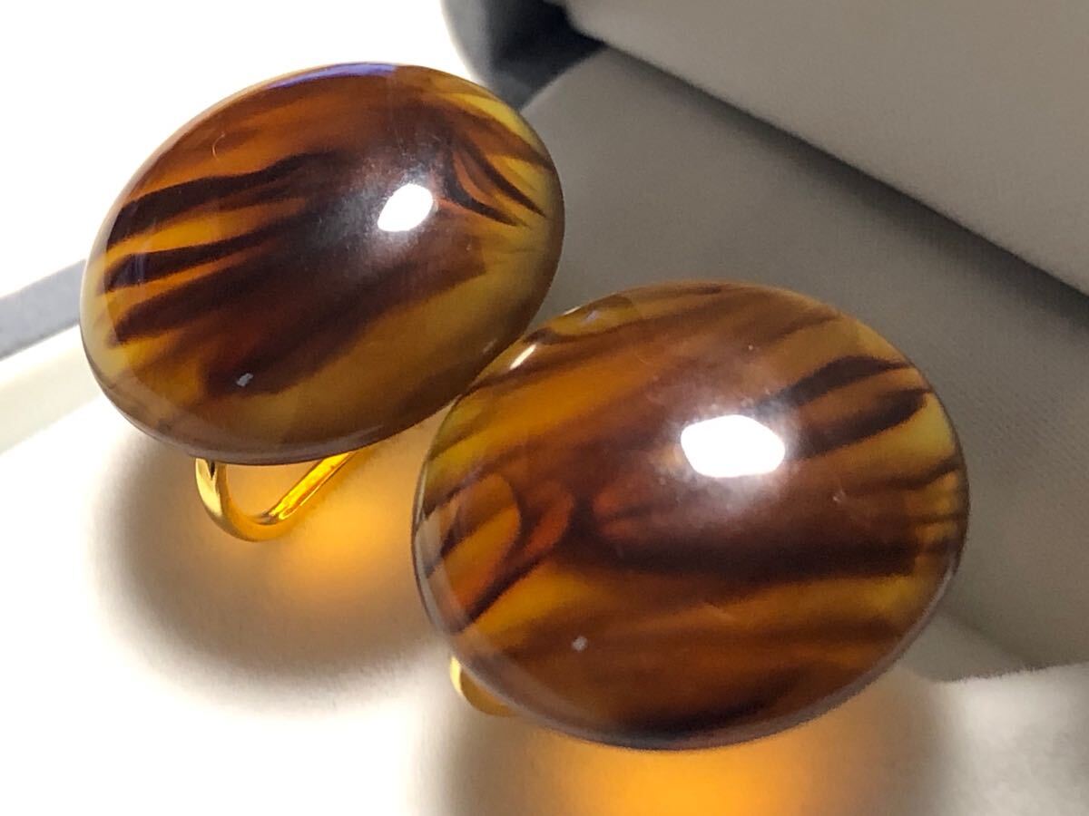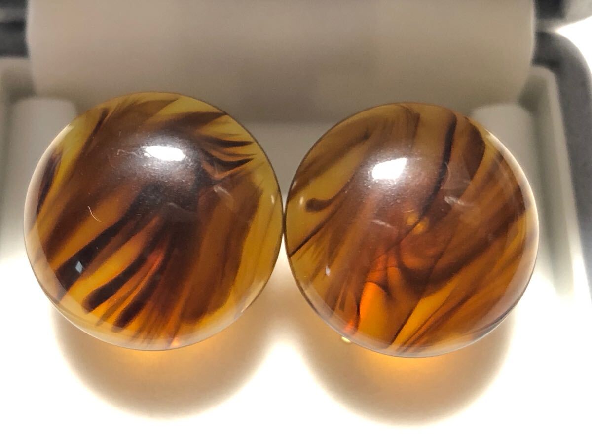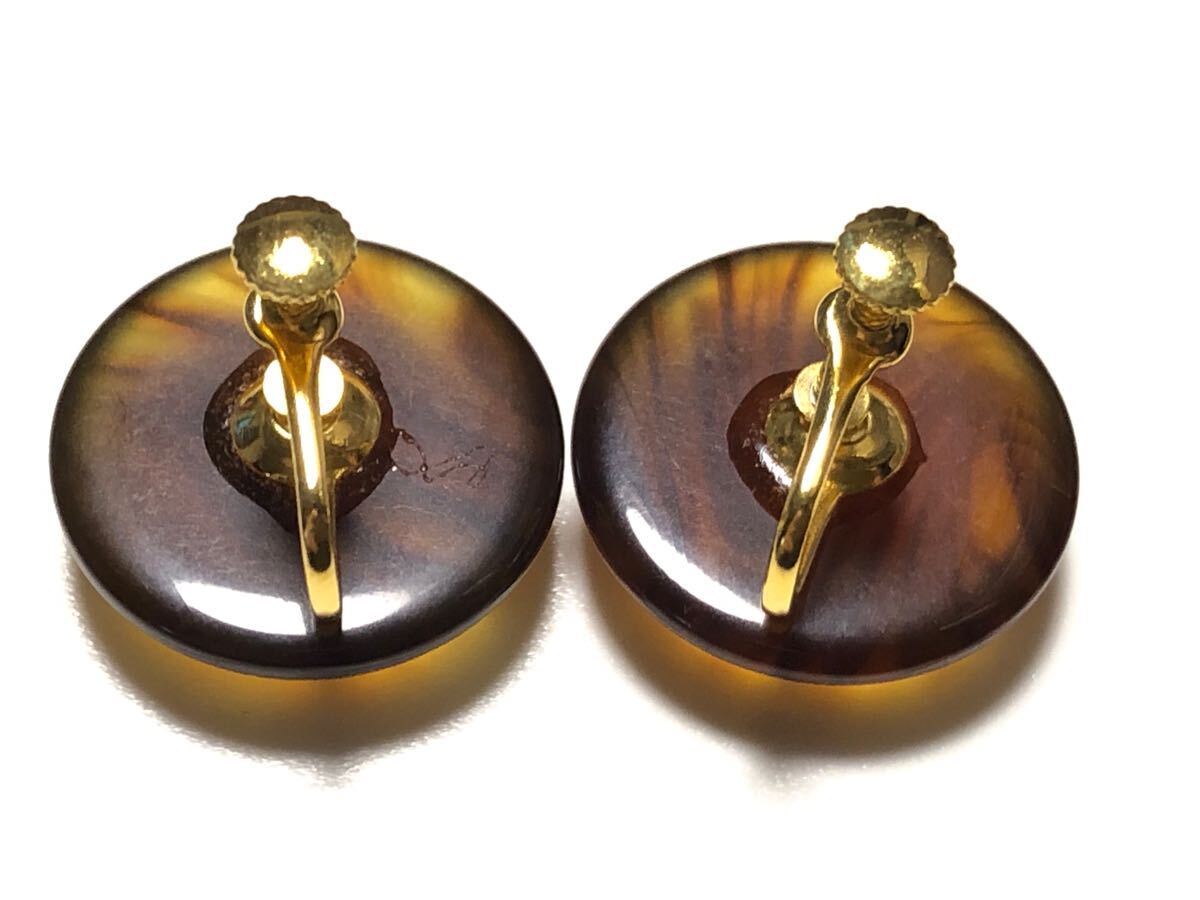 鼈甲風(樹脂)に仕上げた、ラウンドデザインのイヤリングです。状態良好です。