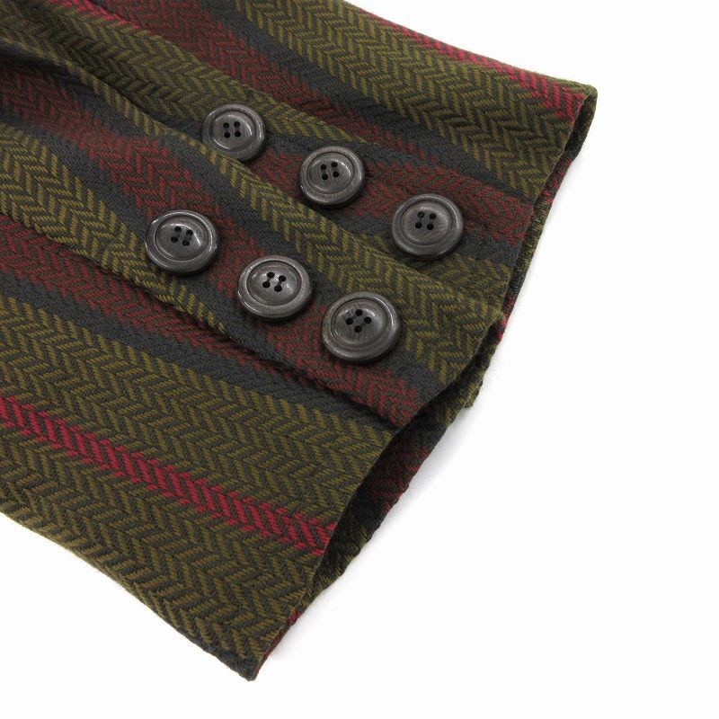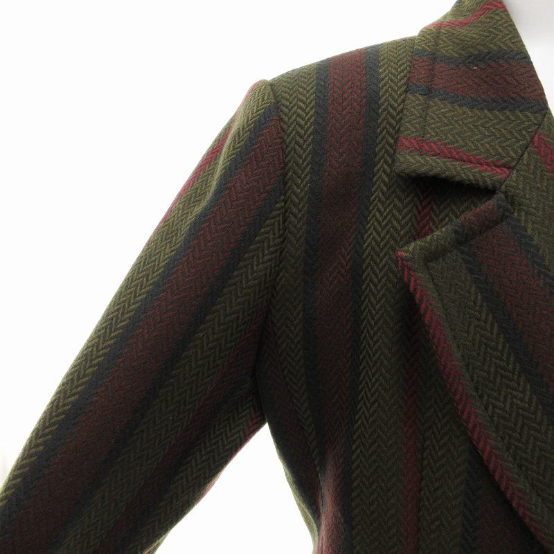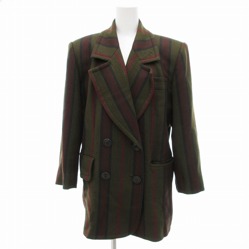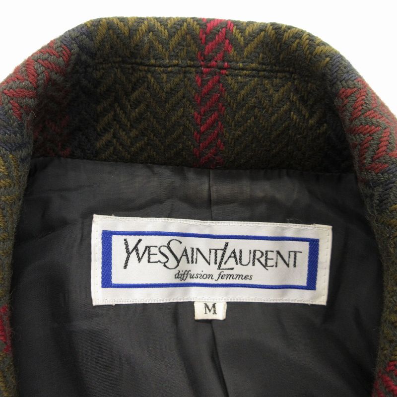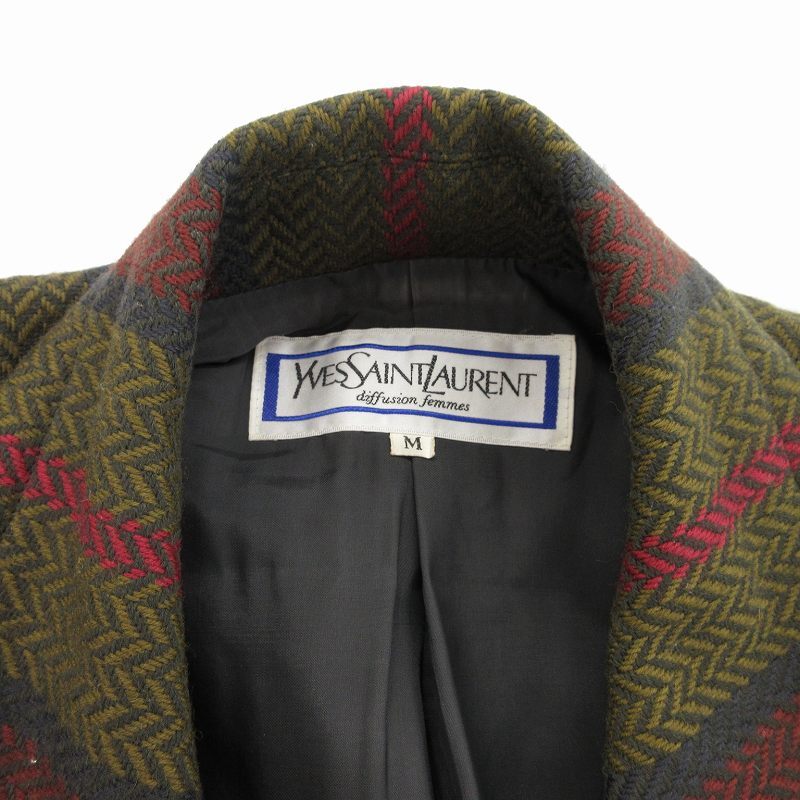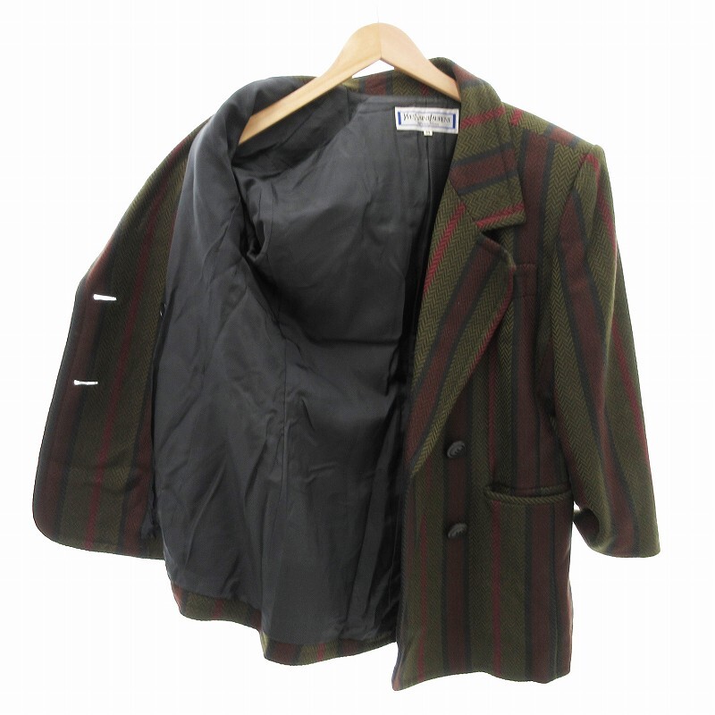 イヴサンローラン YVES SAINT LAURENT ヴィンテージ テーラード ジャケット ダブルブレスト ストライプ ヘリンボーン M 緑 赤 グレー