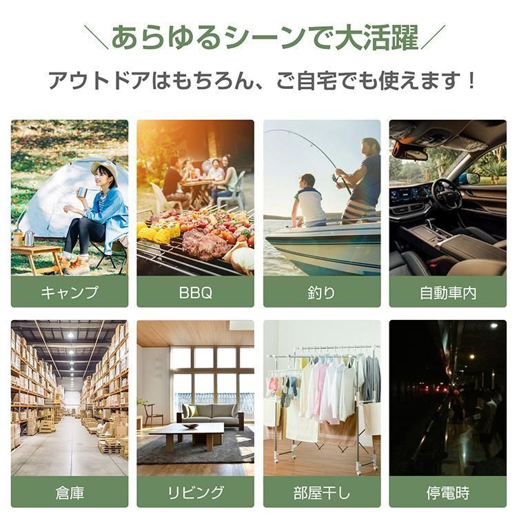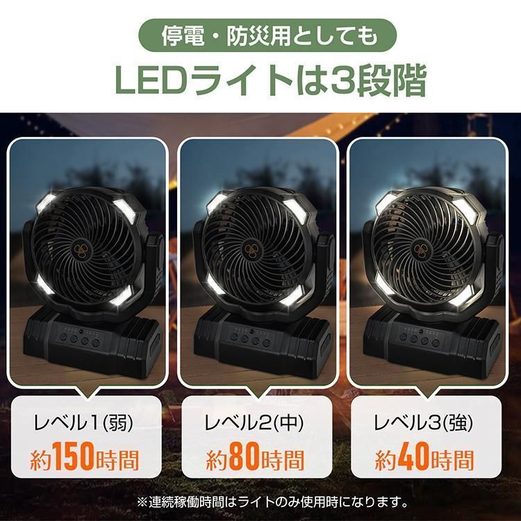 このキャンプ扇風機は32個のLEDライトで周囲を明るく照らします。発光均一で目に優しい。3段階切り替えLEDを完備しています。シーンに合わせた明るさ設定が可能です。