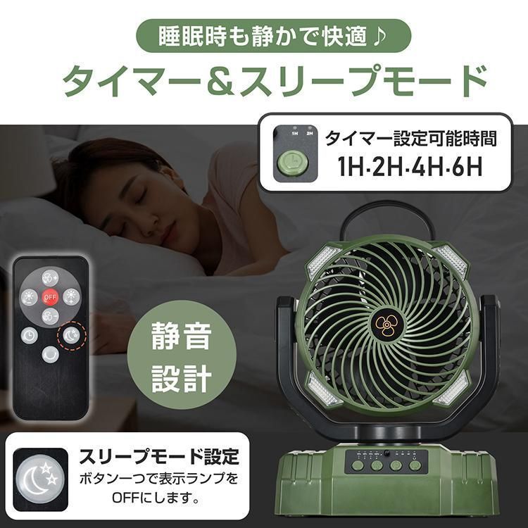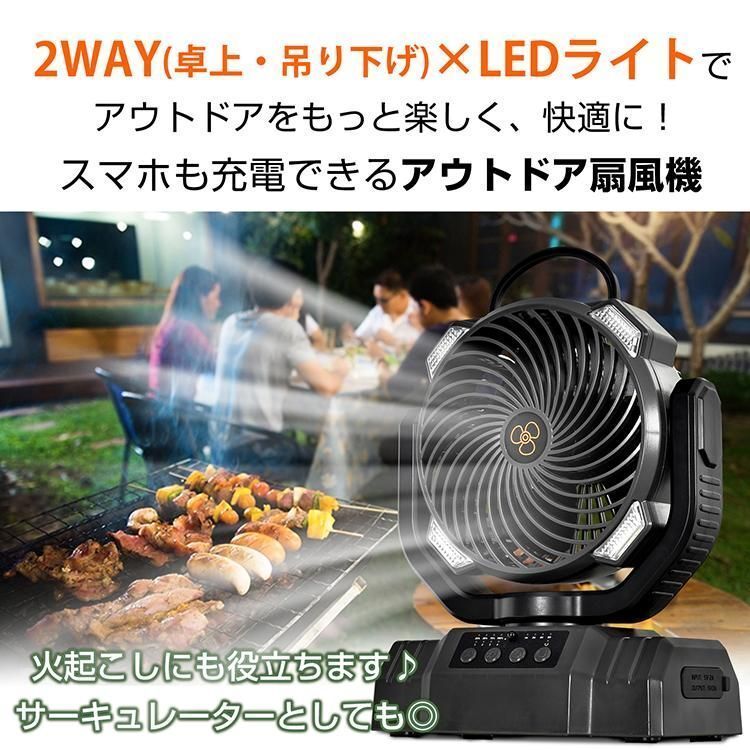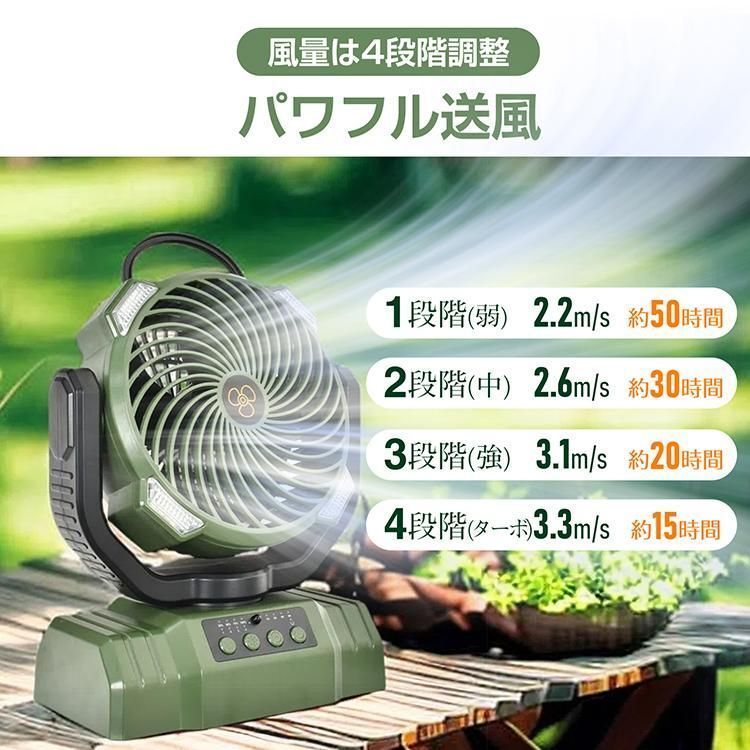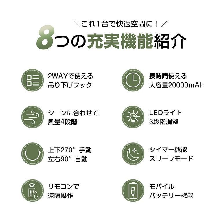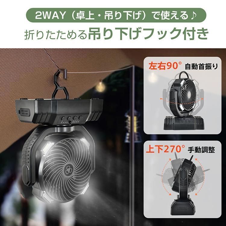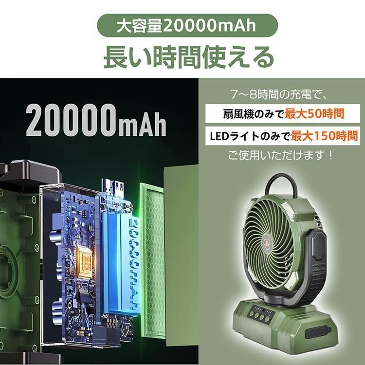 【20000mAh大容量】扇風機 キャンプ 扇風機 アウトドア 自動首振り コードレス 卓上 吊り下げ 小型 サーキュレーター 充電式 タイマー
