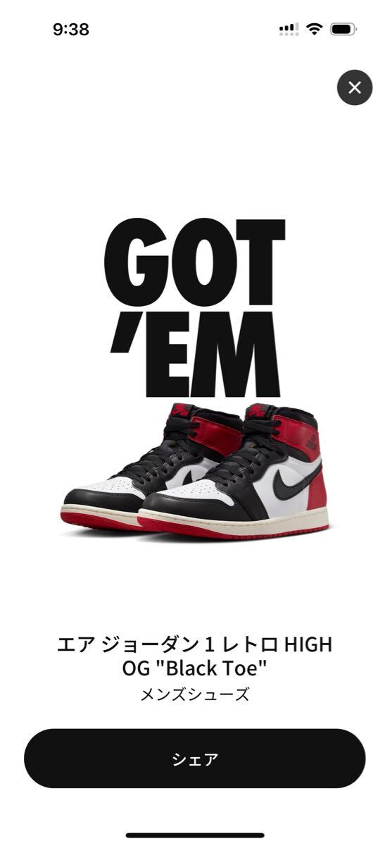 商品名 : エアジョーダン 1 HIGH OG BLACK TOE