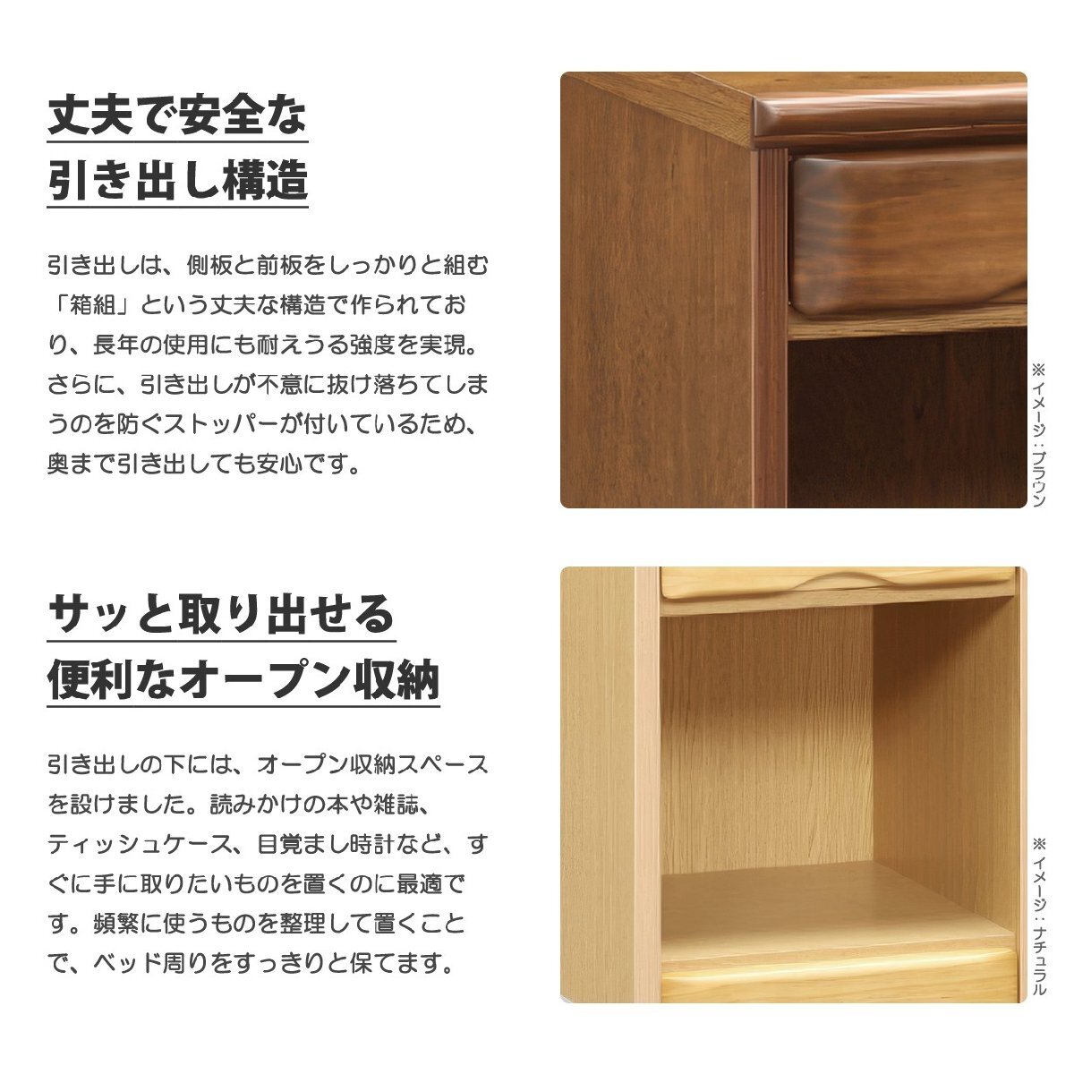 特  徴鍵付き引き出しと2口コンセントが、寝室での「あったらいいな」を形にし、安心と利便性を提供する日本製のナイトテーブルです。