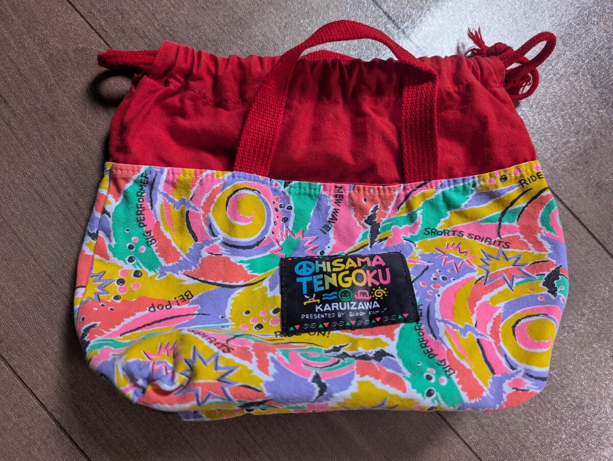 OHISAMA TENGOKU KARUIZAWA おひさま天国軽井沢 PEWSENTED BY GLORY FAMILY 軽井沢 赤 巾着型 お弁当袋 ランチ巾着 小物入れ ランチバッグ