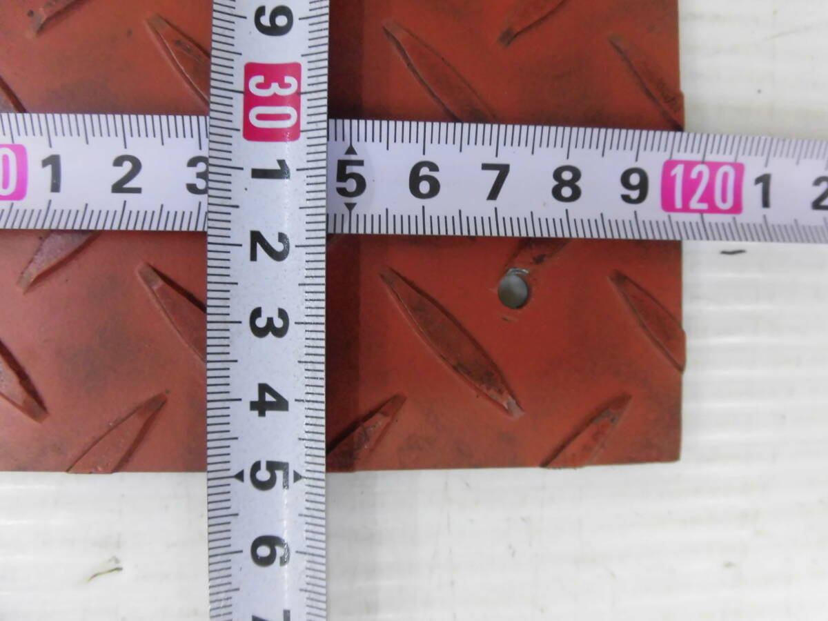 | 商品説明 | 材質 : 縞板 スチール 板厚 : 3.2mm サイズ : 約350mm x 約1198mm (4ヶ所5ミリの孔があいています) 数量 : 計1枚 重量 : 約11㌔ 実際の商品は、表示寸法より若干の誤差があります。 製品サイズ : ±5mm程度 サビが有ります。 | |