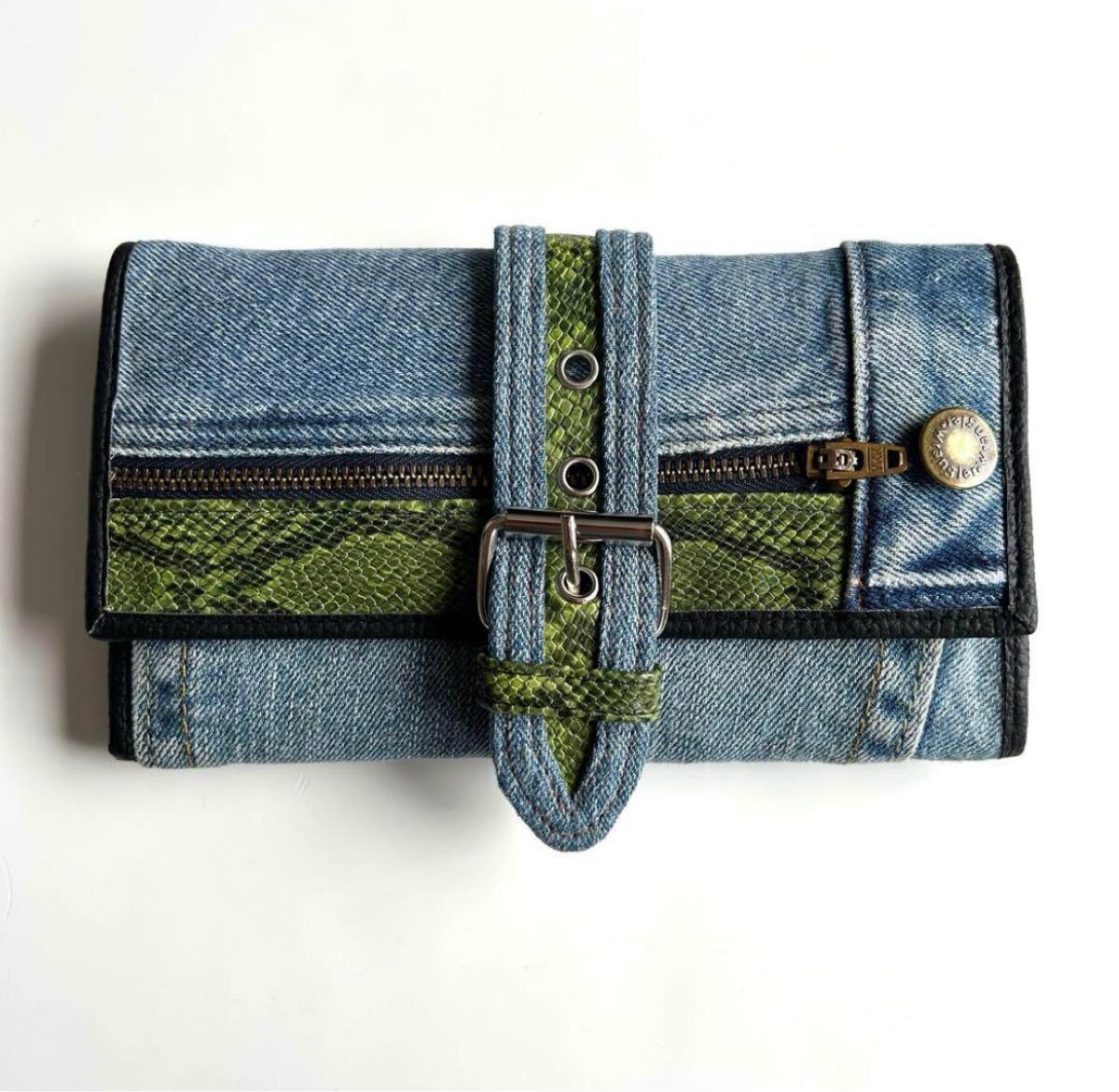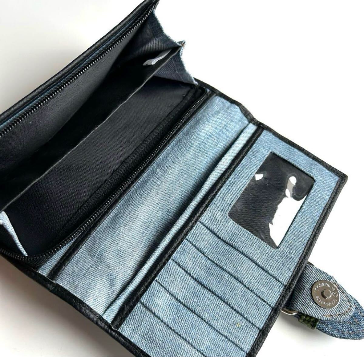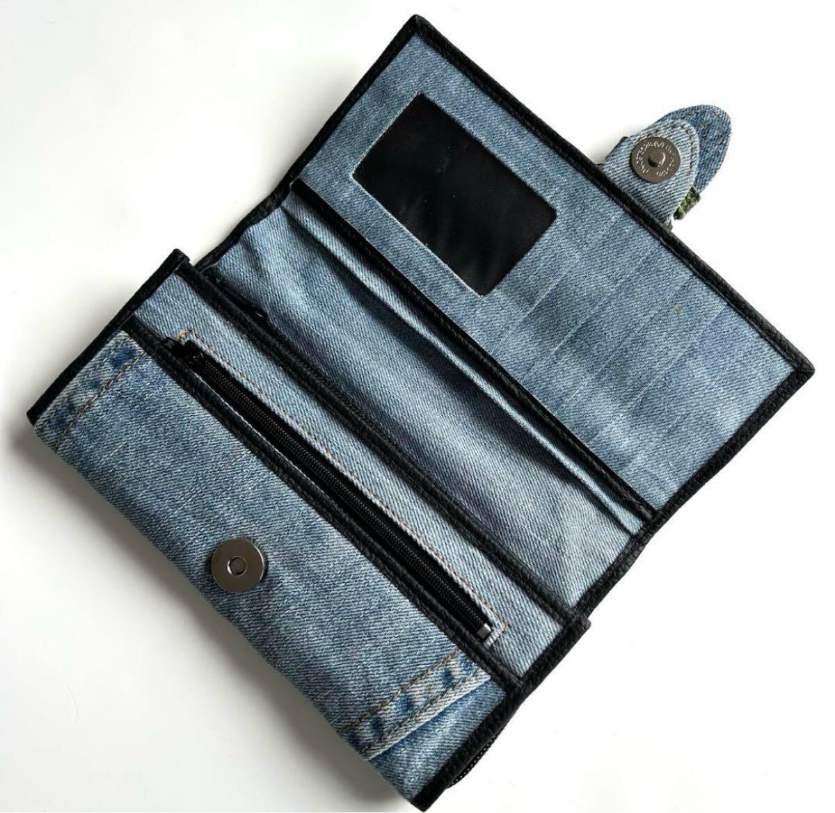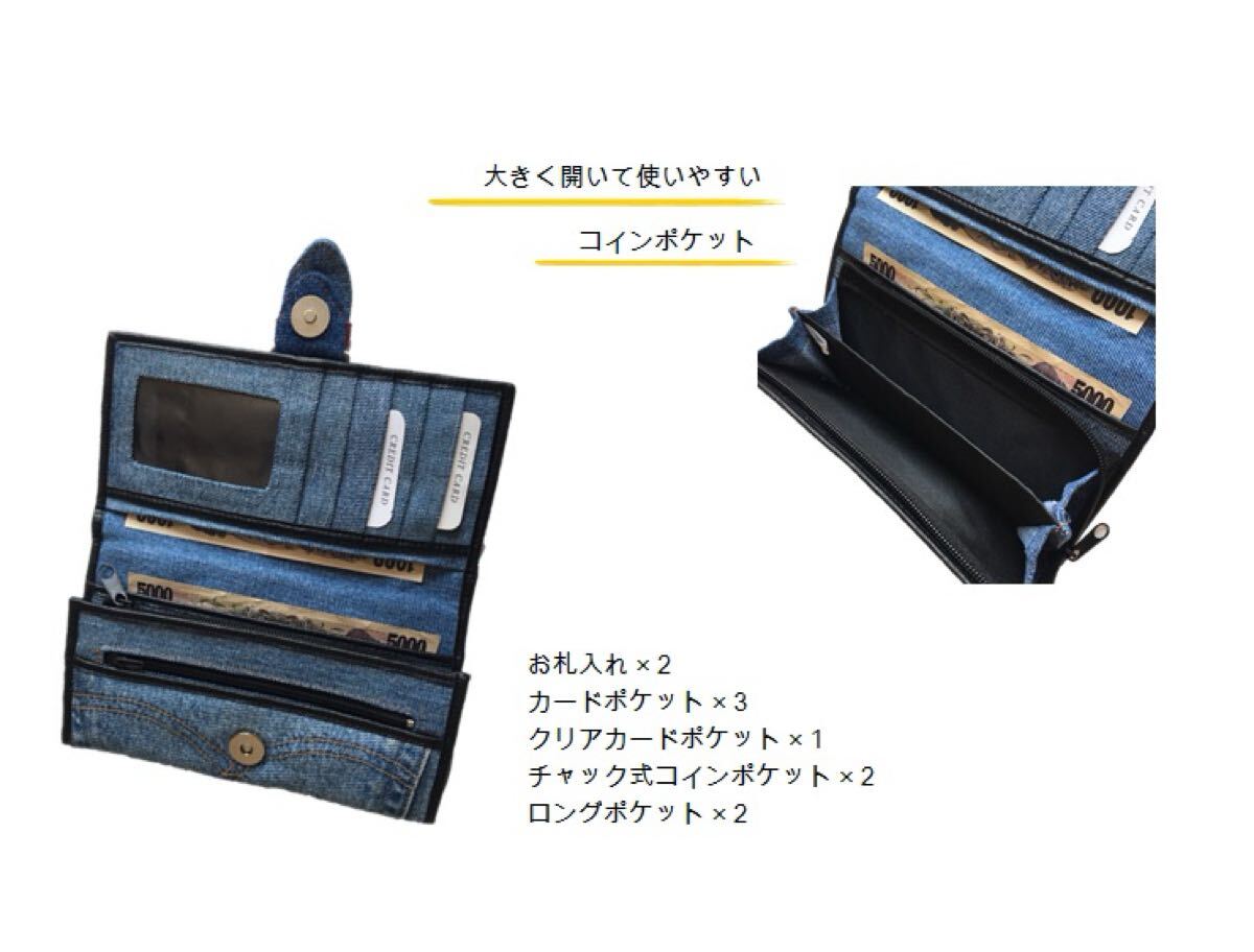 ひとつひとつハンドメイドで作られたリメイクデニムの長財布です。
